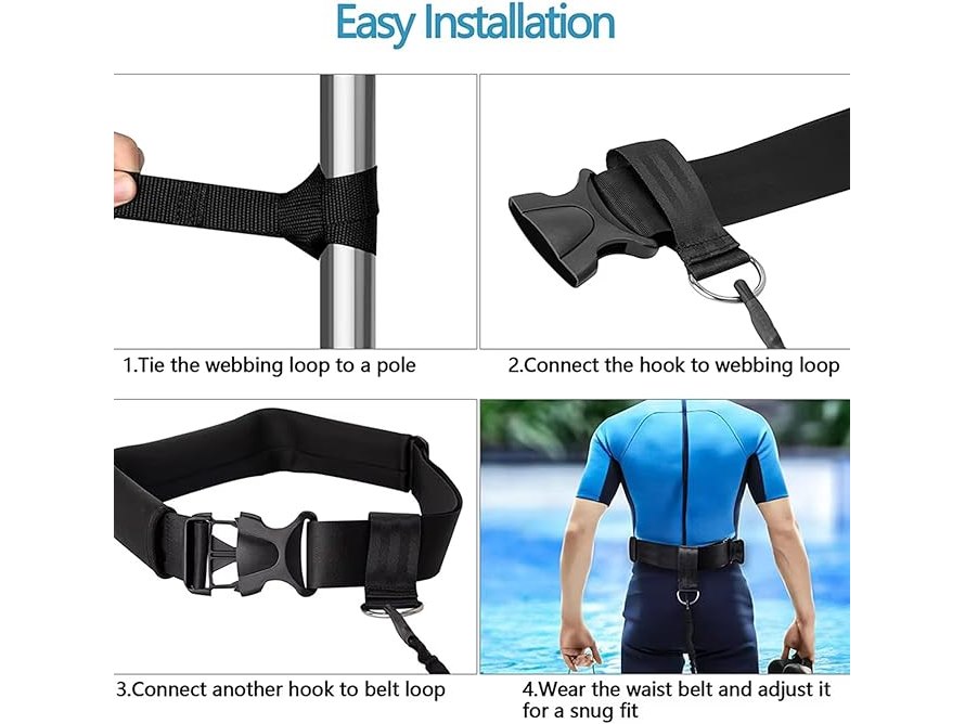 Ongeopend, in seal, Zwemgordel voor zwembad, zwembad, volwassenen, tegenstroominstallatie voor zwembaden, zwemweerstand, riem met 2,5 - 7,5 m verstelbaar zwemtouw voor elk zwembad, zonder tegenstroominstallatie, zwart, B0F9PDTSSQ