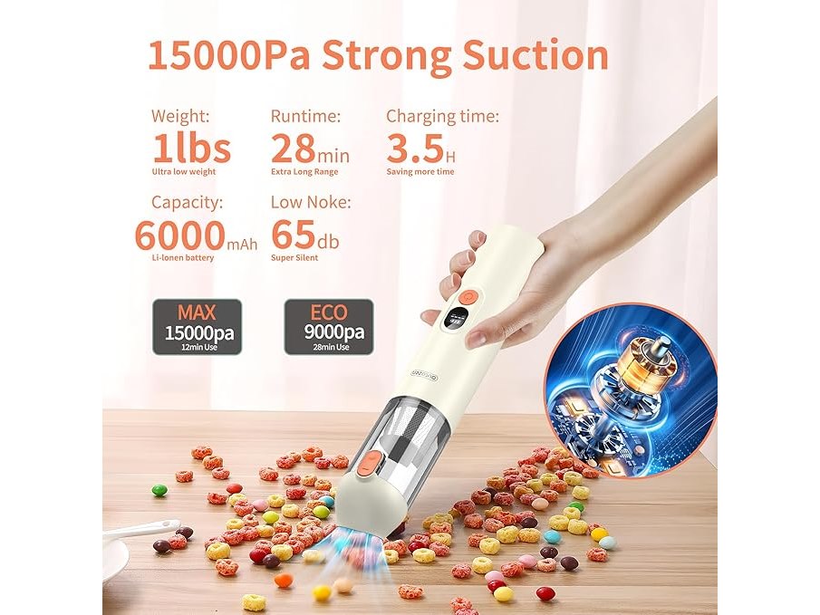 Ongeopend, in seal, Autozen M3 draadloze autostofzuiger, 15000Pa Krachtige Zuigkracht, Draagbare 4-in-1 Autostofzuiger met LED-scherm en Verlichting, Meerdere Mondstukken voor het Reinigen van het Auto-interieur, Mile White, B0D5YJ5FHB