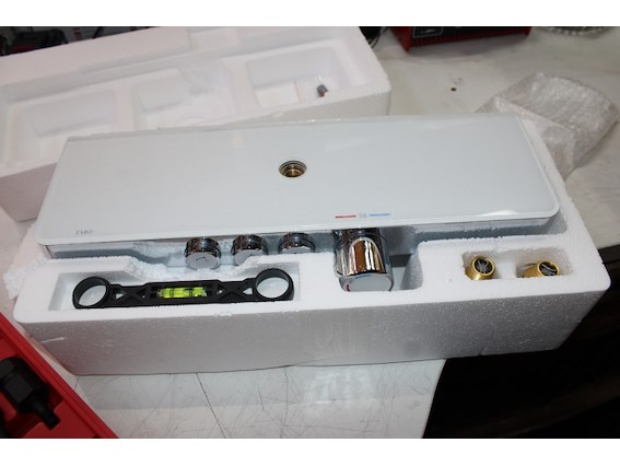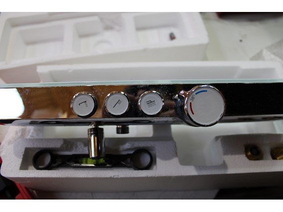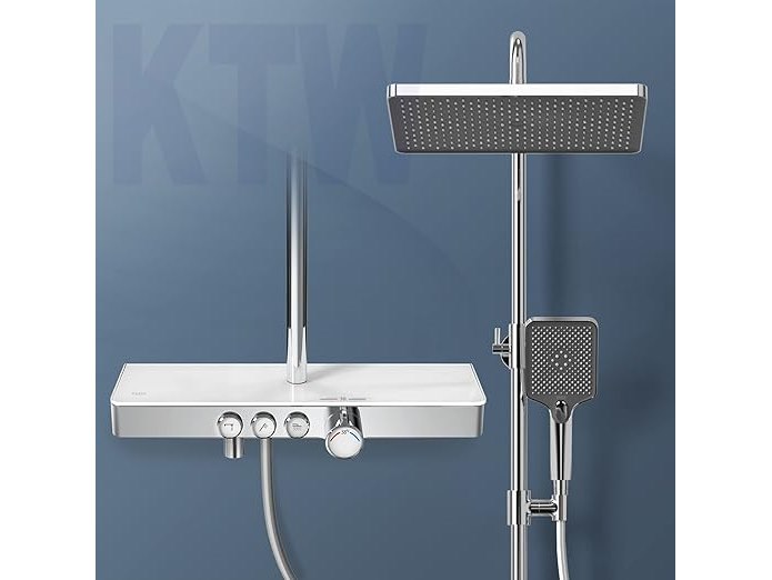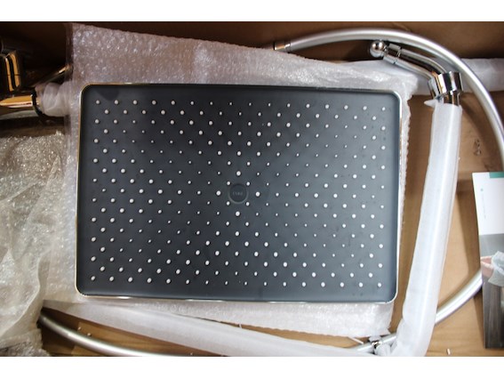 Gebruikssporen, Pluggen en vijzen ontbreken, EMKE douchesysteem met thermostaat, doucheset, doucheset, 45 cm, thermostaatplaat, handdouche met 3 straalsoorten, regendouche met kraan, douchematset, regendouche, KTW-certificering, chroom, B0BTHQJ18Q
