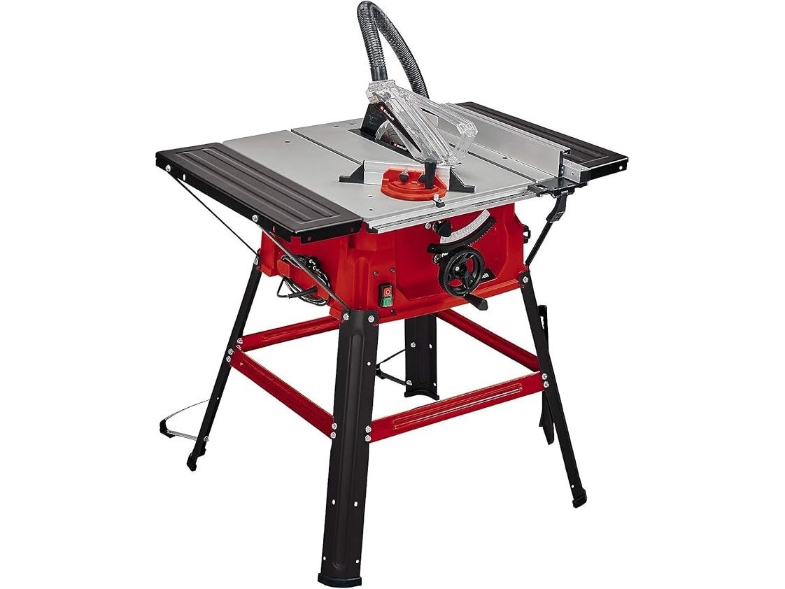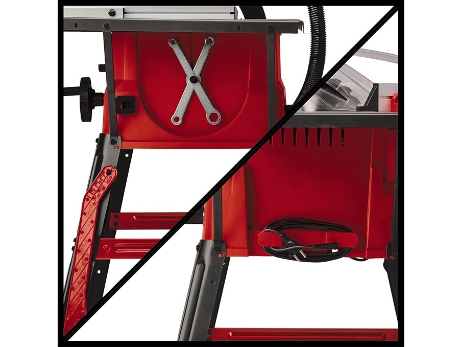 Ongebruikt, getest en werkend, volledig, ok, Einhell-tafelzaag TC-TS 2025/2 U, max. 2000 watt, verstelling hoogte/helling van het precisiezaagblad, scheuraanslag, hoekaanslag +/- 60 °, contactvlak links/rechts, Rood, Zilver, B0816XHC1G