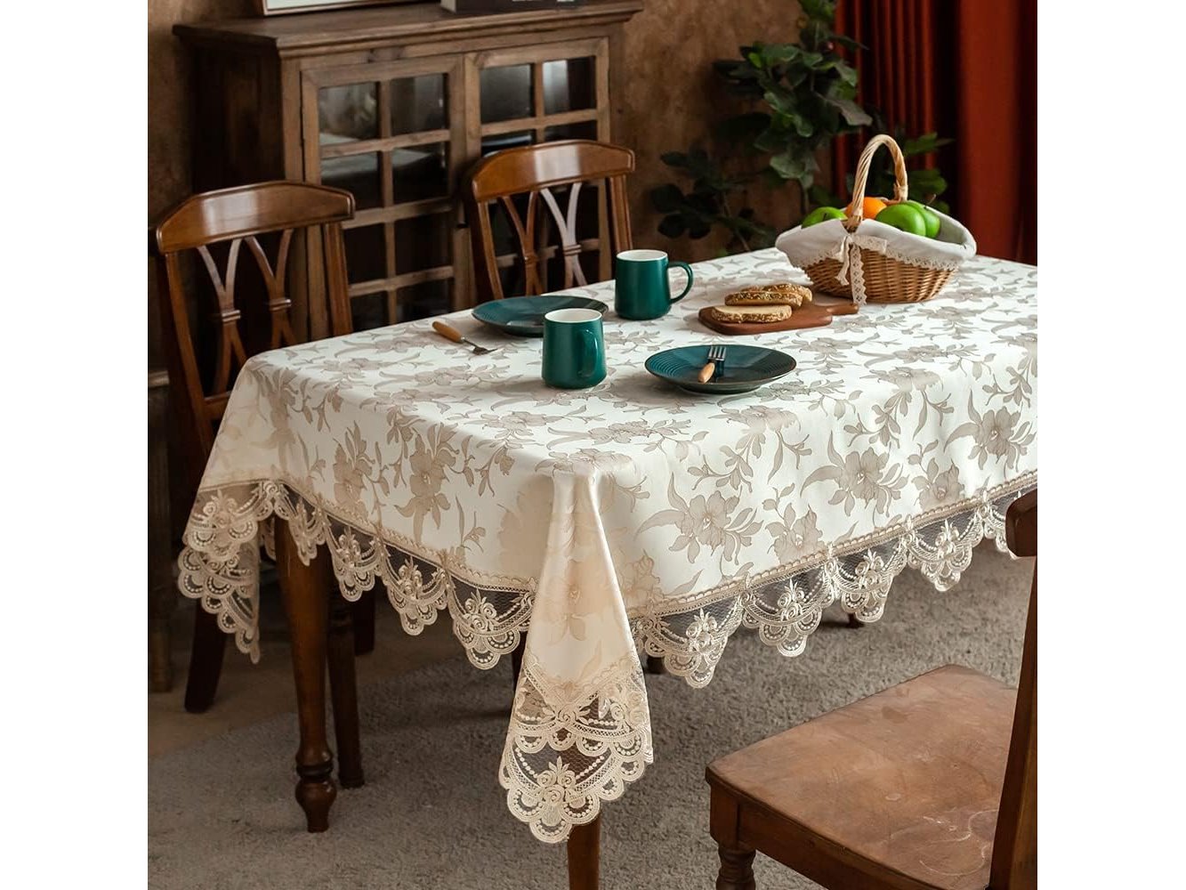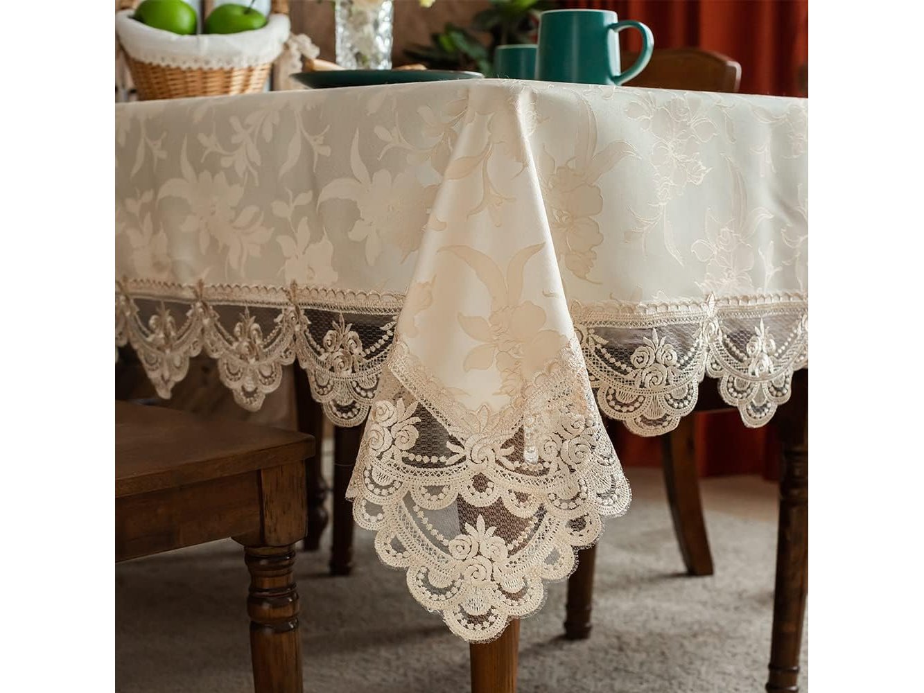 Ongeopend, ARTABLE Exquise kant high-end jacquard stof tafelkleed tafelloper rechthoekig (beige, 140 x 220 cm)