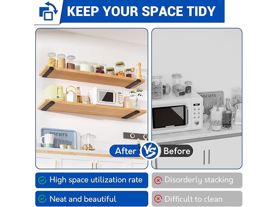 Ongeopend, WELDUN Set van 6 metalen steigerplankbeugels, 20cm zware wandgemonteerde hoekrekken met opstaande randen, voor een industriële, rustieke en moderne inrichting, , B0DXN32QQF