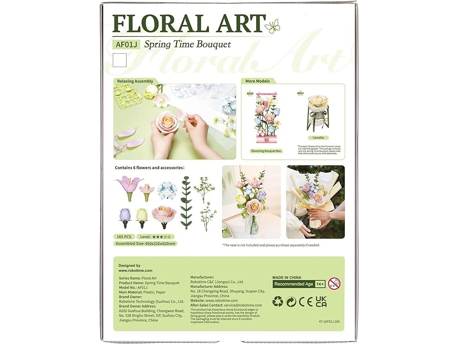 Ongeopend in seal, ROWOOD 3D-puzzel van kunststof, bloemenboeket, bloemenpatroon om te bouwen voor volwassenen en kinderen, woondecoratie, cadeau-ideeën voor dames,B0DF77GDRB