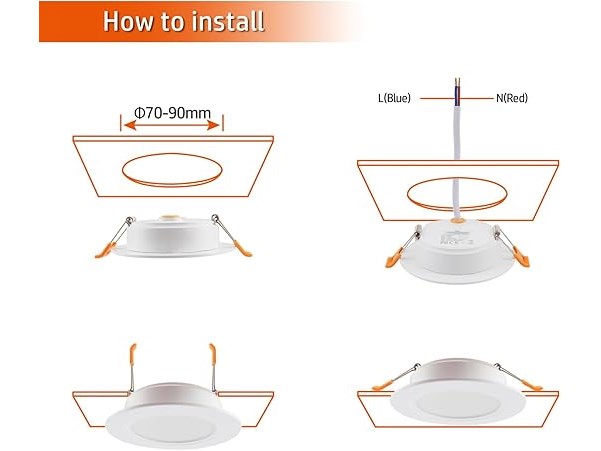 Ongeopend, ok, Led-inbouwspot, extra vlak, 230 V, 5 W, 6 stuks, inbouwlamp, Led-spot, 3000/4000/6000 K, plafondspot, IP54, voor badkamer, woonkamer, keuken, slaapkamer, B09CPYG19G