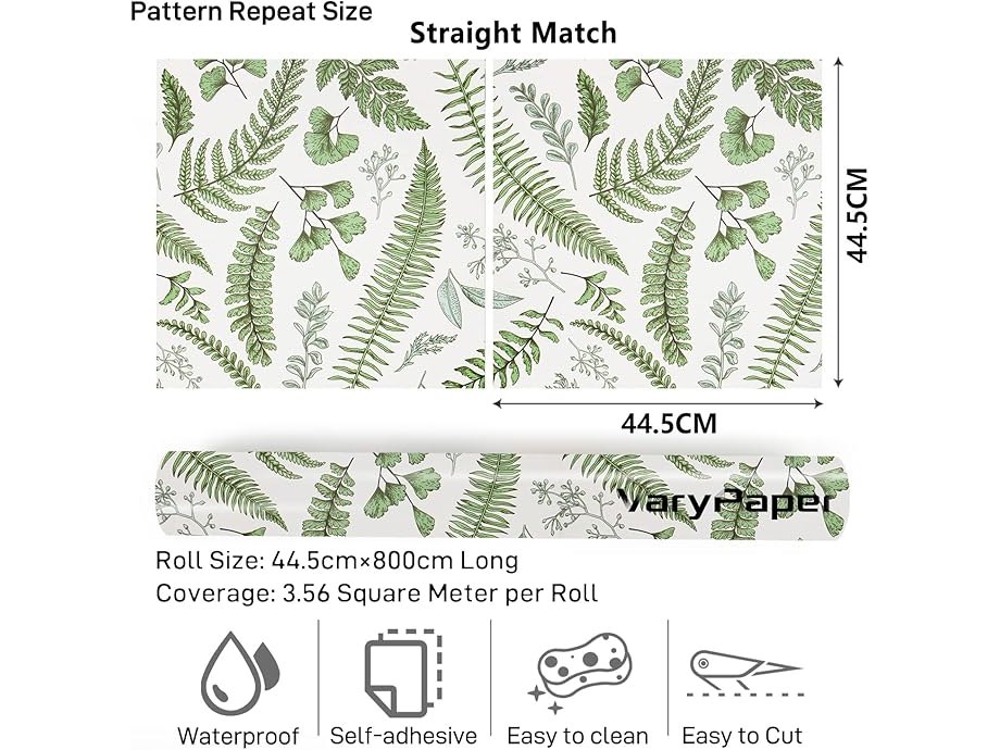 Ongeopend, in seal, 9 x VaryPaper Behang bladeren groen fotobehang bloemen vintage 44,5 cm x 800 cm jungle behang meubelfolie beige zelfklevende folie keukenachterwand wandbehang badkamer waterdicht behang woonkamer patroon, B0BB9MPLYR