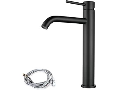 Ongeopend, in seal, Maynosi hoge wastafelkraan, armatuur met uitloop hoogte 195 mm, zonder afvoergarnituur, waterkraan badkamer met flexibele slangen, modern minimalistisch design, matzwart, matzwart, B0DKBFS7JR