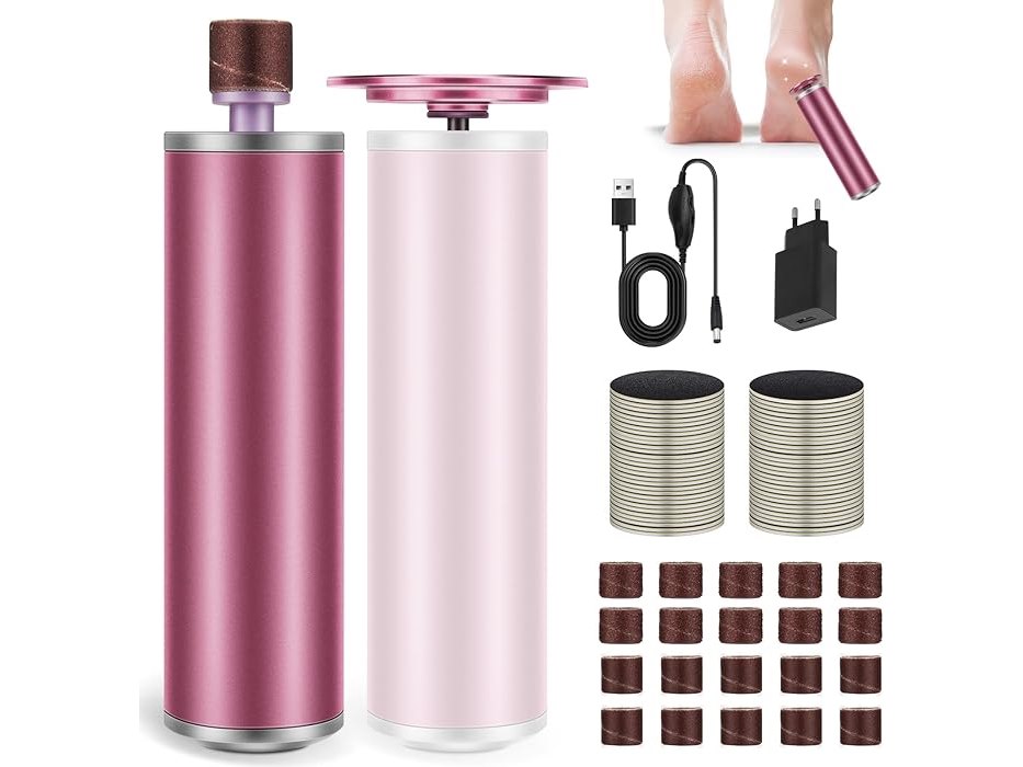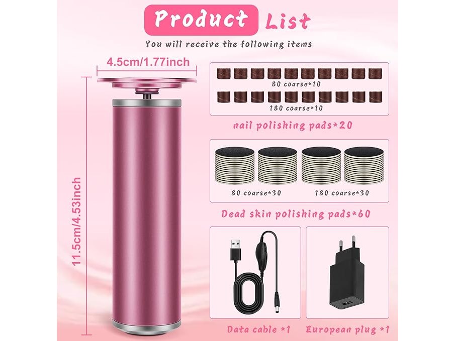 Ongeopend, in seal, beschadigde verpakking, Heberuck 2-in-1 elektrische eeltverwijderaar, eeltvoetverwijderaar, instelbare snelheid met 20 stuks nagelschuurbladen en 60 stuks schuurpapierpads voor droge en gebarsten voeten, B0F7XJSS7C