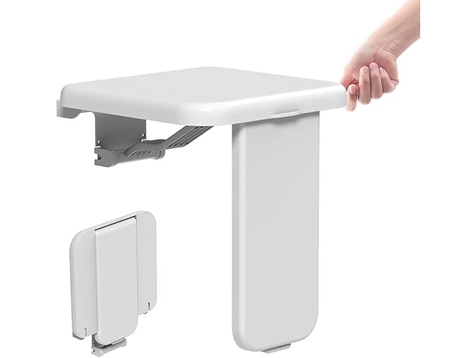 Ongebruikt, volledig, ok, Heuffe Opvouwbaar Douchezitje met Steunpoot - Wandgemonteerd 200kg Draagvermogen, Antislip Badkamerstoel voor Senioren en Minder Valide Volwassenen, Wit, B09DSQ2ZZ9