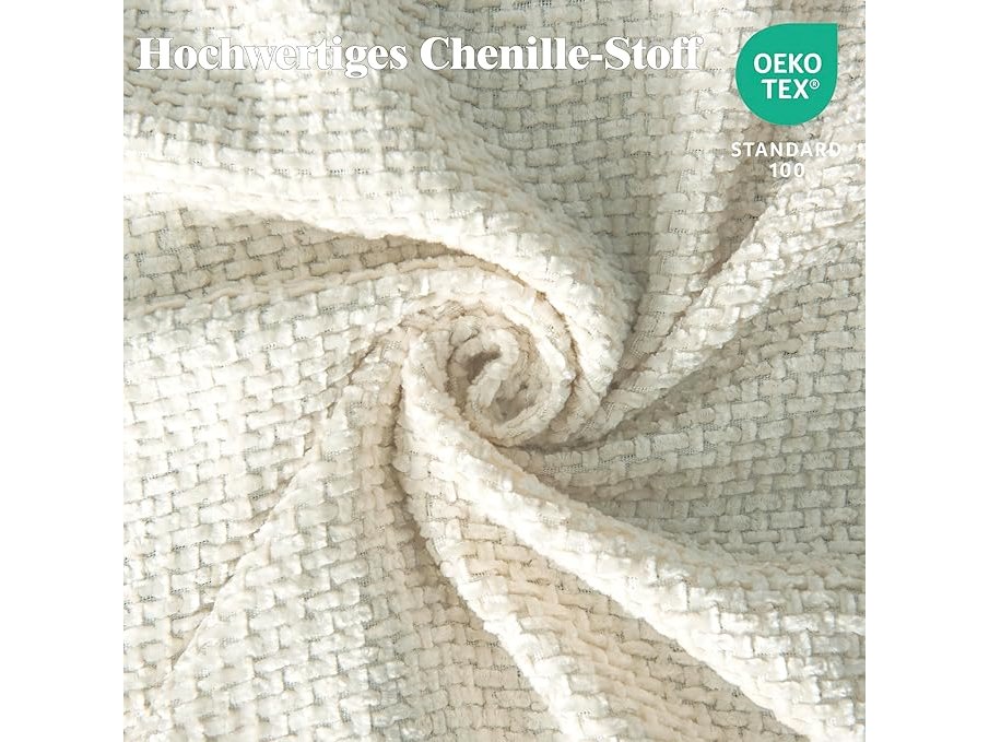 Ongeopend, HIG Chenille Gordijnen met inslagringen, set van 2, 140 x 145 cm (h x b), beige, dikke, dubbellaagse gordijnen, ondoorzichtig, thermogordijn , B0F8NKX25J