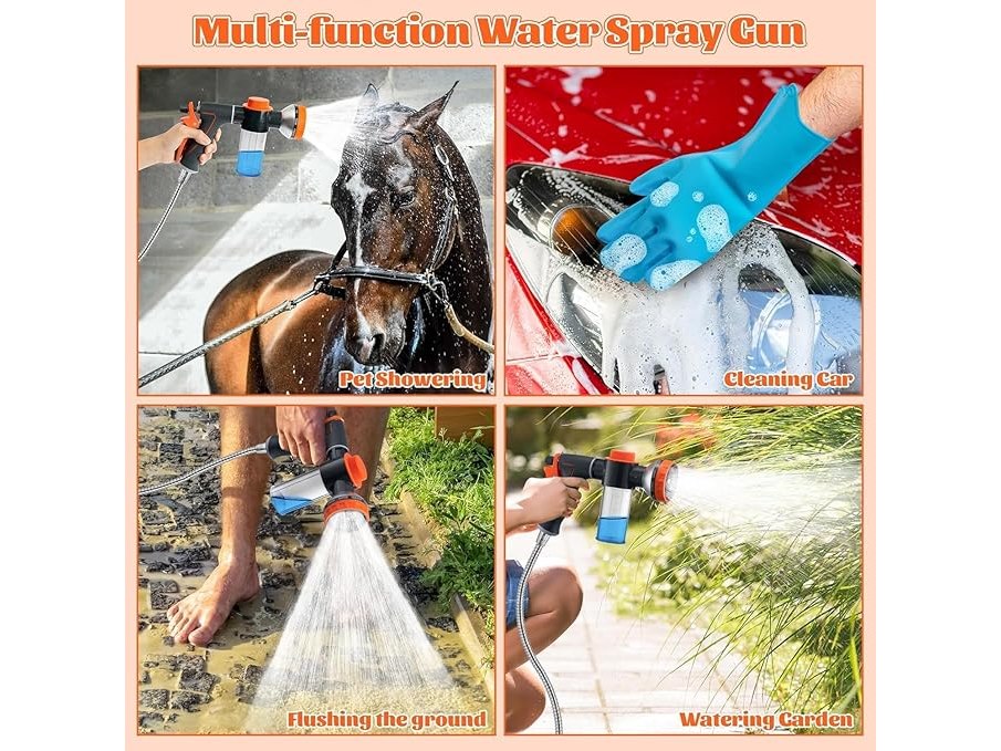 Ongeopend, in seal, BeYumi Hondenwasslangbevestiging met 100cc zeepdispenser, 10-in-1 sproeimodi, schuimmondsproeier met metalen 3-wegs doucheomstellers en 6,6 ft lange slang voor huisdieren badkamer douchen binnen en buiten, B0DDC98SGS