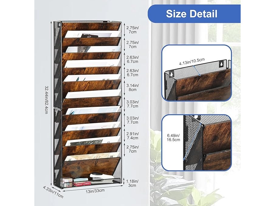 Ongeopend, in seal, Solinxe Hangende muurvijlhouder, bureau post papier documentenmap organizer met onderste lade tijdschriftenrek (zwart/antiek, 10 lagen), B0D3PP5YK7