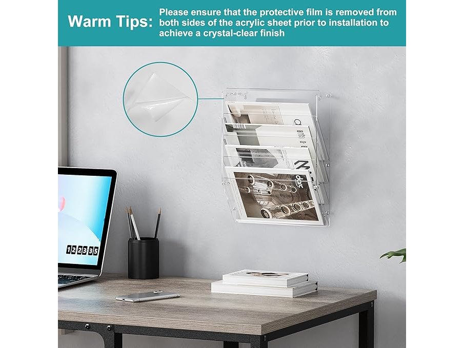 Ongeopend, in seal, Solinxe Hangende tijdschriftenstandaard, wand met 5 vakken, transparant, wandopbergvakken, A4, documentenhouder, krantenhouder, kantoor, school, opbergruimte, organizer, B0FH1XXS6N