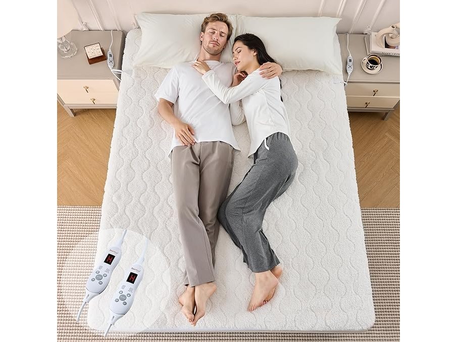 Minieme gebruikssporen, ok, Elektrische matrastopper Bearhug in crèmekleur, 135 x 190 cm - 10 temperatuurstanden, 2 zones met individuele bediening, 12-uurs timer, machinewasbaar, B0F8BCDBJD