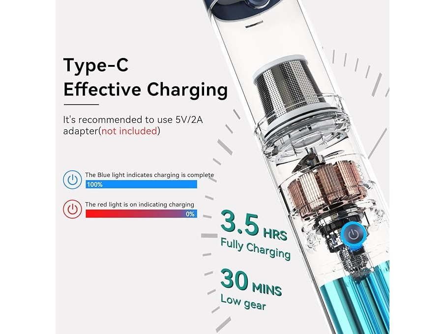 Ongeopend in seal, Minthouz Car Vacuum Cleaner ,draadloos, sterrkte 17000Pa, 3-in-1, 120W met blaasfunctie en licht, Draagbare handstofzuiger (Blauw) B0CVTJ1XKM
