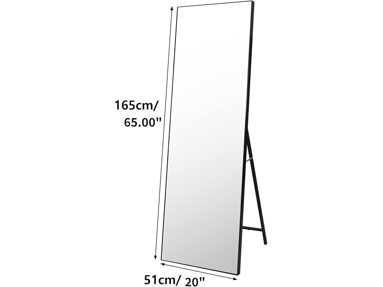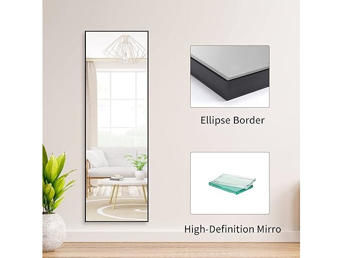 Vasemouh lichaamsspiegel met zwart frame en splinterbescherming, grote wandspiegel of staande spiegel, voor slaapkamer, badkamer, woonkamer of garderobe, 165 x 51 cm, B0BTBMSFBH