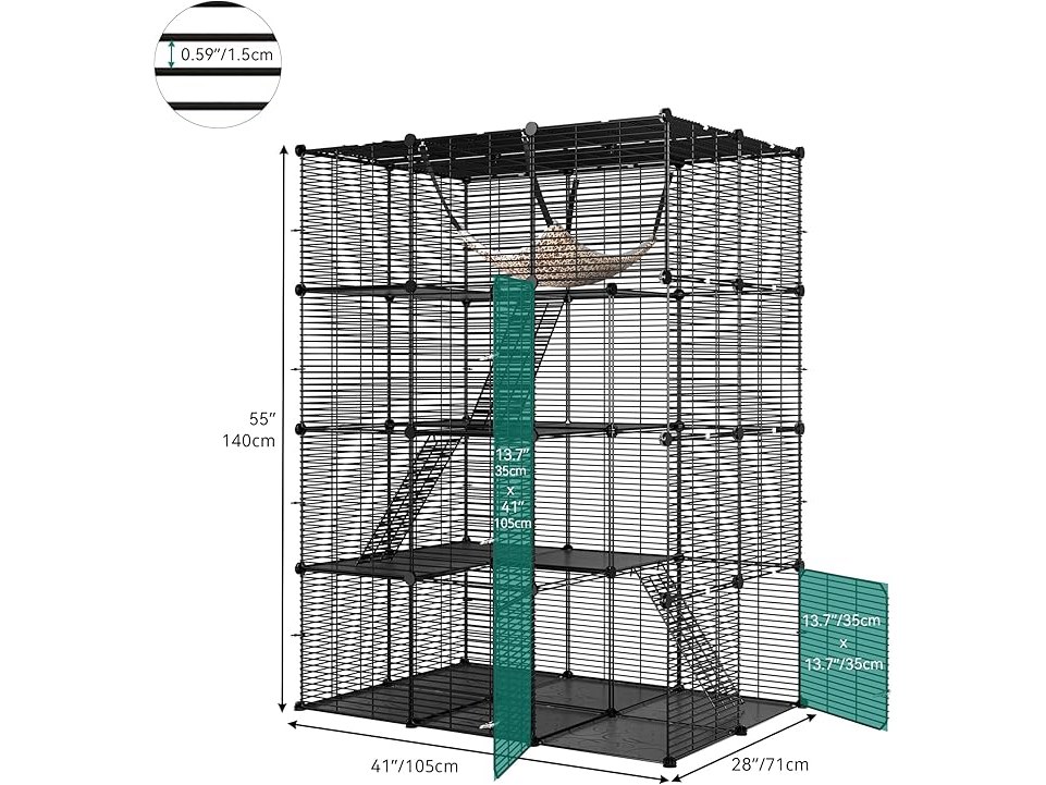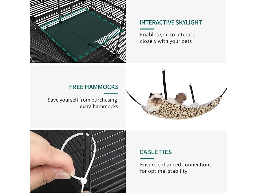 Ongeopend, YITAHOME Grote dierenkooi voor binnen, 4 niveaus, metaaldraad met 3 ladders, Catio met hangmat, dierenkooi voor 1 tot 3 katten, konijn, zwart, 107 x 72 x 142 cm B0CL9X4M6H