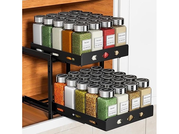 Ongeopend, ok, Kruidenrek voor de keuken, zwarte telescopische lade voor keuken, in hoogte verstelbaar kruidenrek voor kasten, organizer voor uittrekbare kasten, 24,5 cm b x 27,5 cm b x 23,2 cm h, B0CVZVMG7P