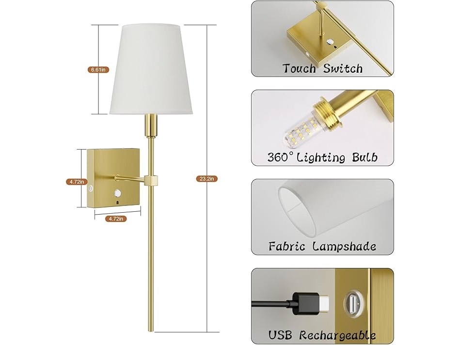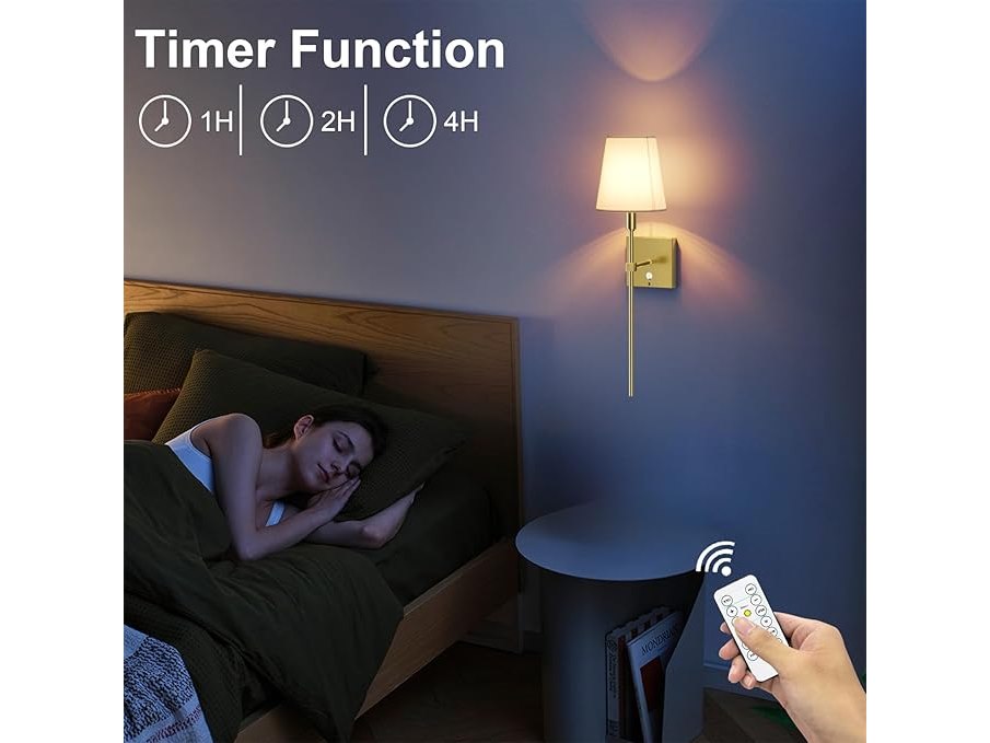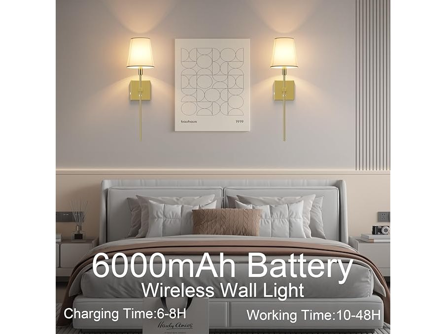 Ongeopend, ok, Coinmit 2 stuks draadloze wandlamp met timer, 6000 mAh oplaadbare batterij, wandlampen, dimbare gouden wandlampen, touch-wandlamp met afstandsbediening, stoffen kap, wandlamp voor binnen, B0DGTLWN7X