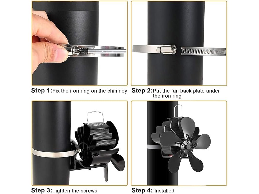 Ongeopend, ok, Open haardventilator, 5 bladen, warmteaangedreven kachelventilator, houtkachelventilatoren voor kachels en open haarden, stille warmteaangedreven open haardventilator, B0BJBJ3RS1