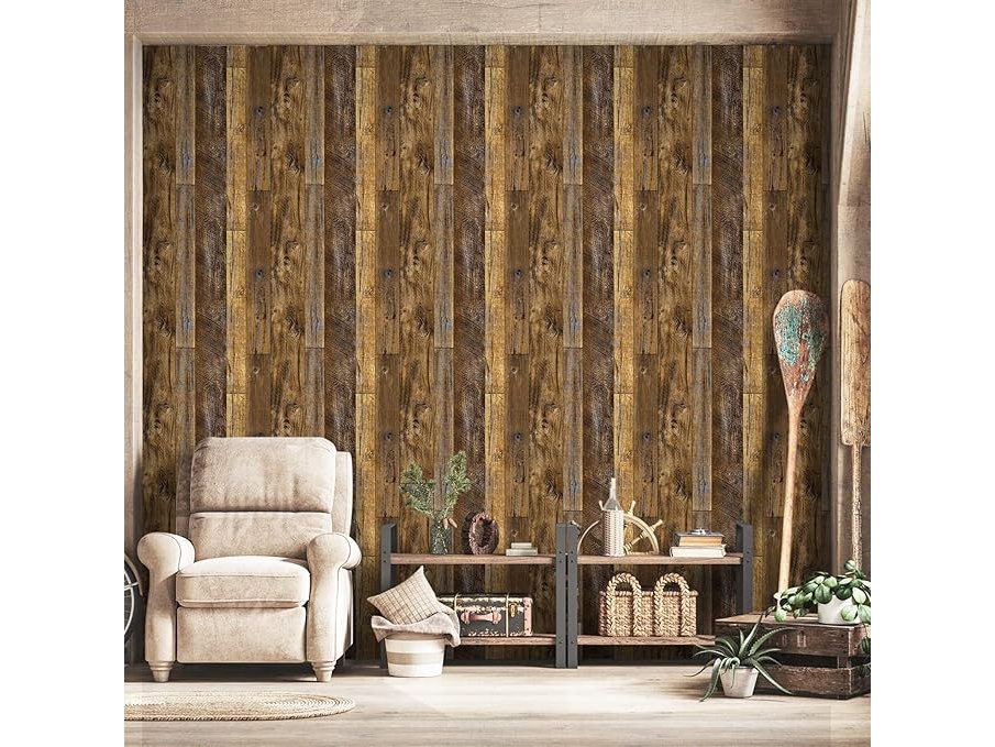 Ongeopend, 6 rollen, Abyssaly Zelfklevende Meubelfolie Houtlook Zelfklevende Folie Houtbehang 90 m x 600 cm Bruine Vintage Strepen Folie Waterdicht Muurbehang voor Meubels, Muren, Kasten, Keukentafels, B0CM3GGLHK