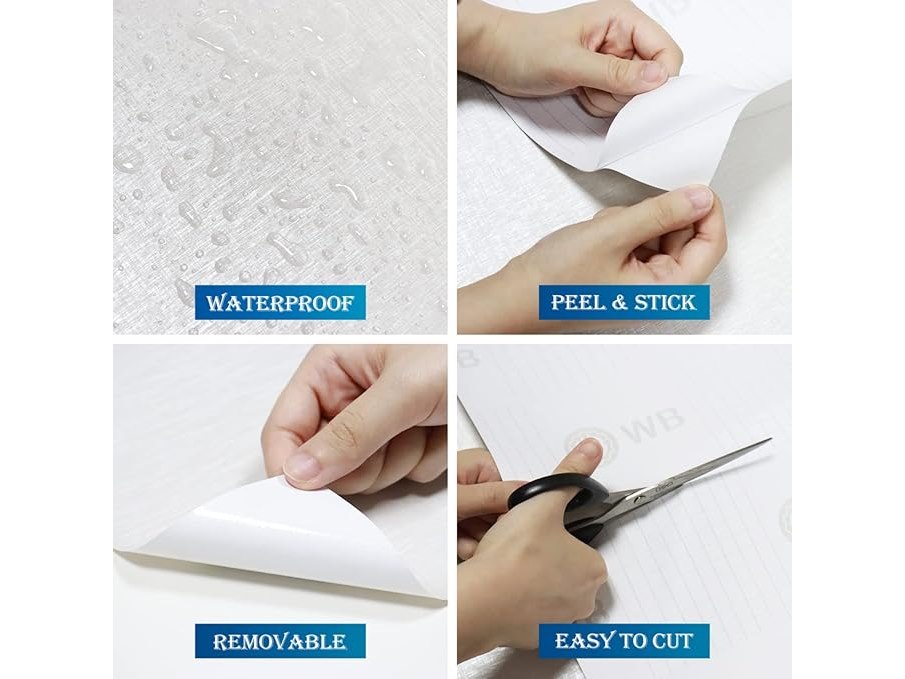 Ongeopend, in seal, 4 x FunStick Wit Behang Textuur Zelfklevend Plakfolie voor Meubels, Keuken, Keukenkast, Werkblad - Afwasbaar, Waterdicht, Modern Patroon - 40CM x 6M Meubelfolie voor Badkamer, B0CJ8WKZG1