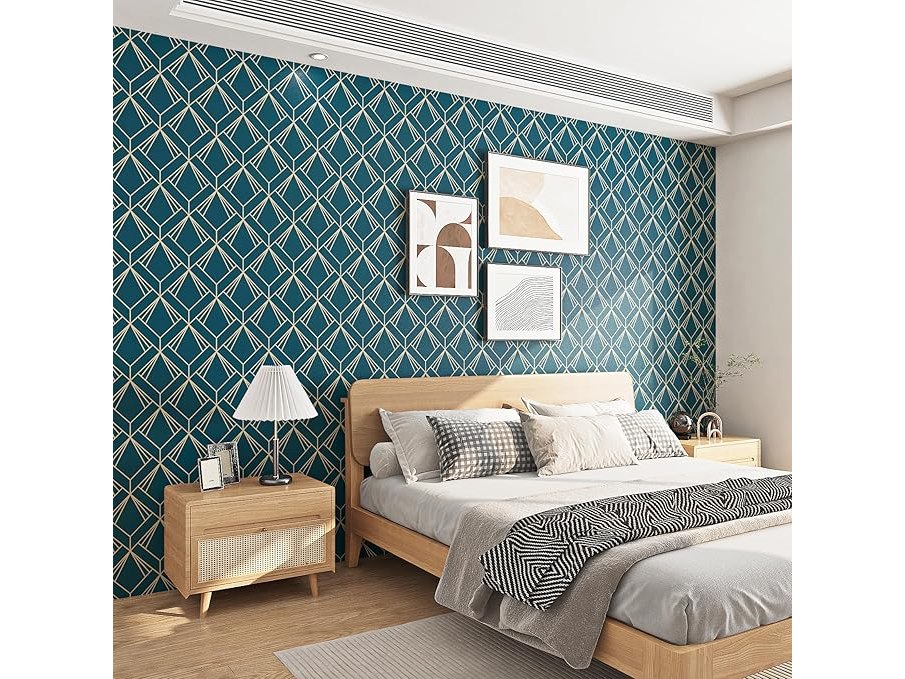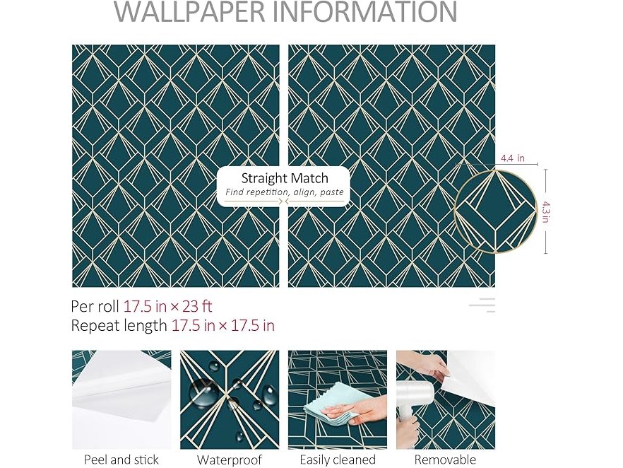 Ongeopend, in seal, 5 x ReWallpaper 44,5cm×7m Behang Zelfklevend Blauw Groen Behang Geometrisch Patroon Groen Plakfolie Voor Badkamer Met Patroon Behang Moderne Hal Minimalistisch Meubelfolie Zelfklevend Groen, B0CW1Q3GY5