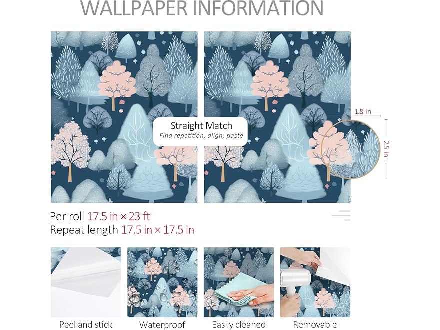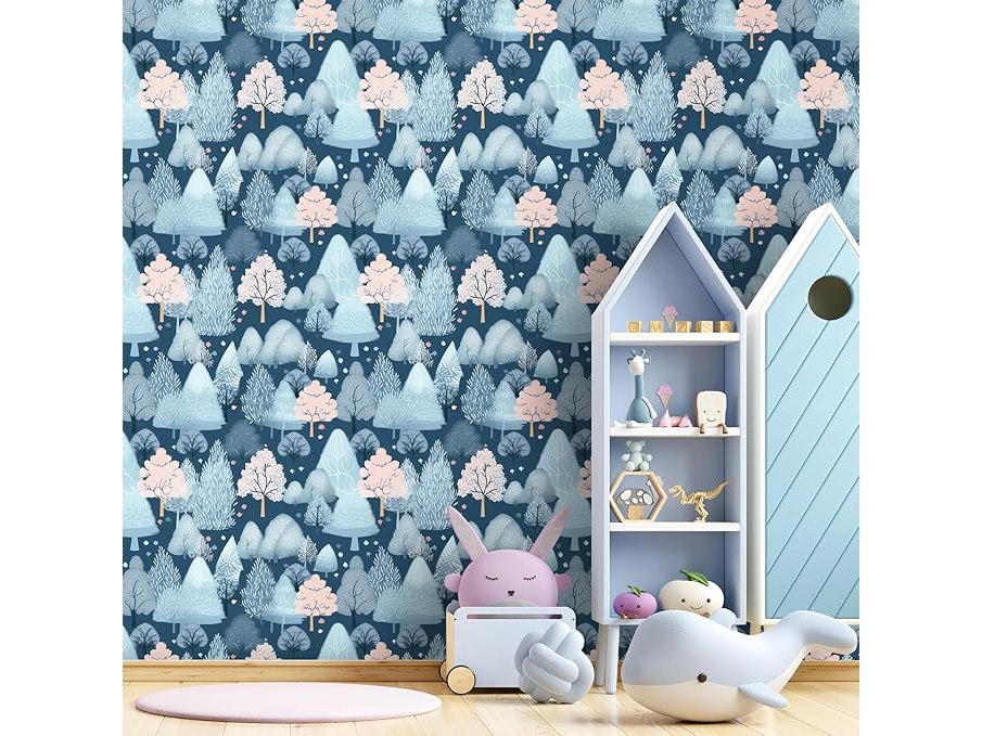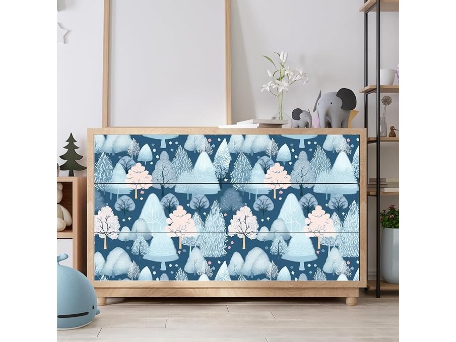 Ongeopend, in seal, 7 x ReWallpaper zelfklevend behang kinderkamer bos 44.5CM×7M meubelfolie blauw patroon voor ladekast kasten behang badkamer waterdicht motief sneeuw decoratieve folie slaapkamer vintage, B0DPHD8PBB