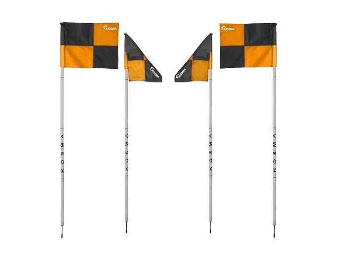 Ongeopend, ok, inclusief draagtas, Kosma Set van 4PC Inklapbare Hoek Vlag | Voetbal Training Hoek Opvouwbare Vlaggen Pole Grootte: 5 Ft x 25mm met Metalen Spike & Oranje/Zwart Quadrant Patroon Vlaggen, B0855T8C99
