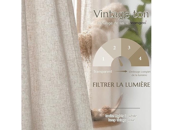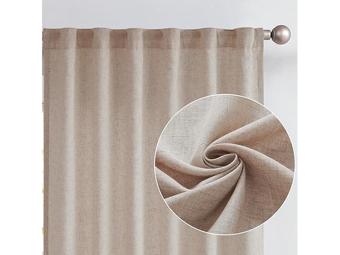 Ongeopend, ok, Vangao Linnen Gordijnen, linnen gordijnen met voering, 140 b x 145 cm (b x h), lengte voor woonkamer, slaapkamer, landhuisstijl, boerderij, modern, lichtfiltering, raamgordijn met verborgen lussen, 2 stuks, B0D2RHV6RB