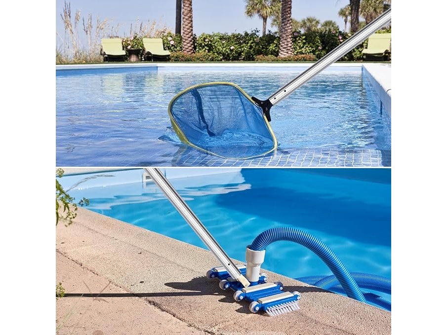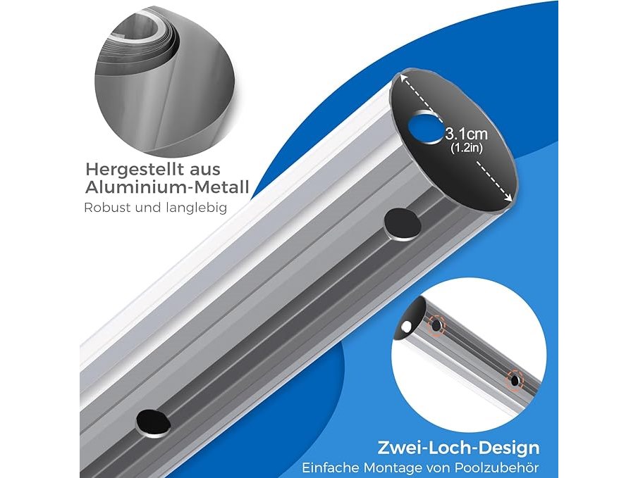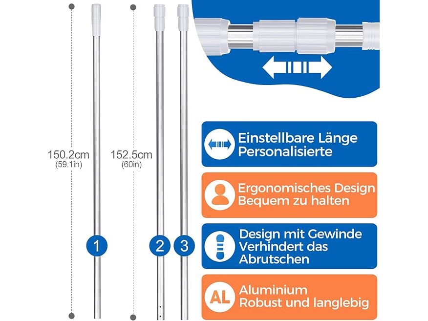 Ongeopend, MASTERTOP Telescoopstang voor zwembad, 3-delige aluminium telescoopstang, instelbaar van 1,7 m tot 4,7 m, universele kop voor accessoires, B0CWQDGQHF