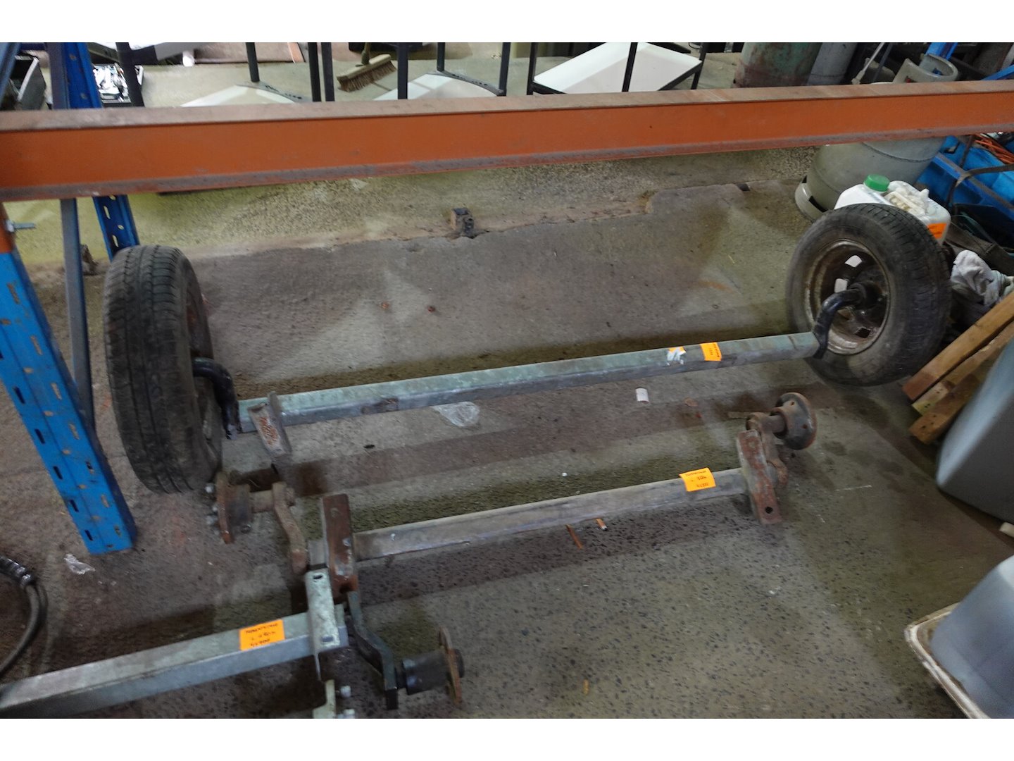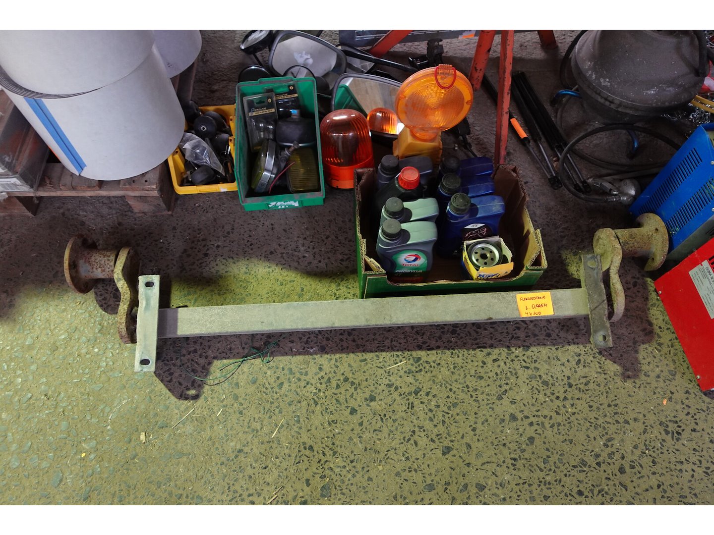 Lot autobenodigheden en assen voor aanhangwagen