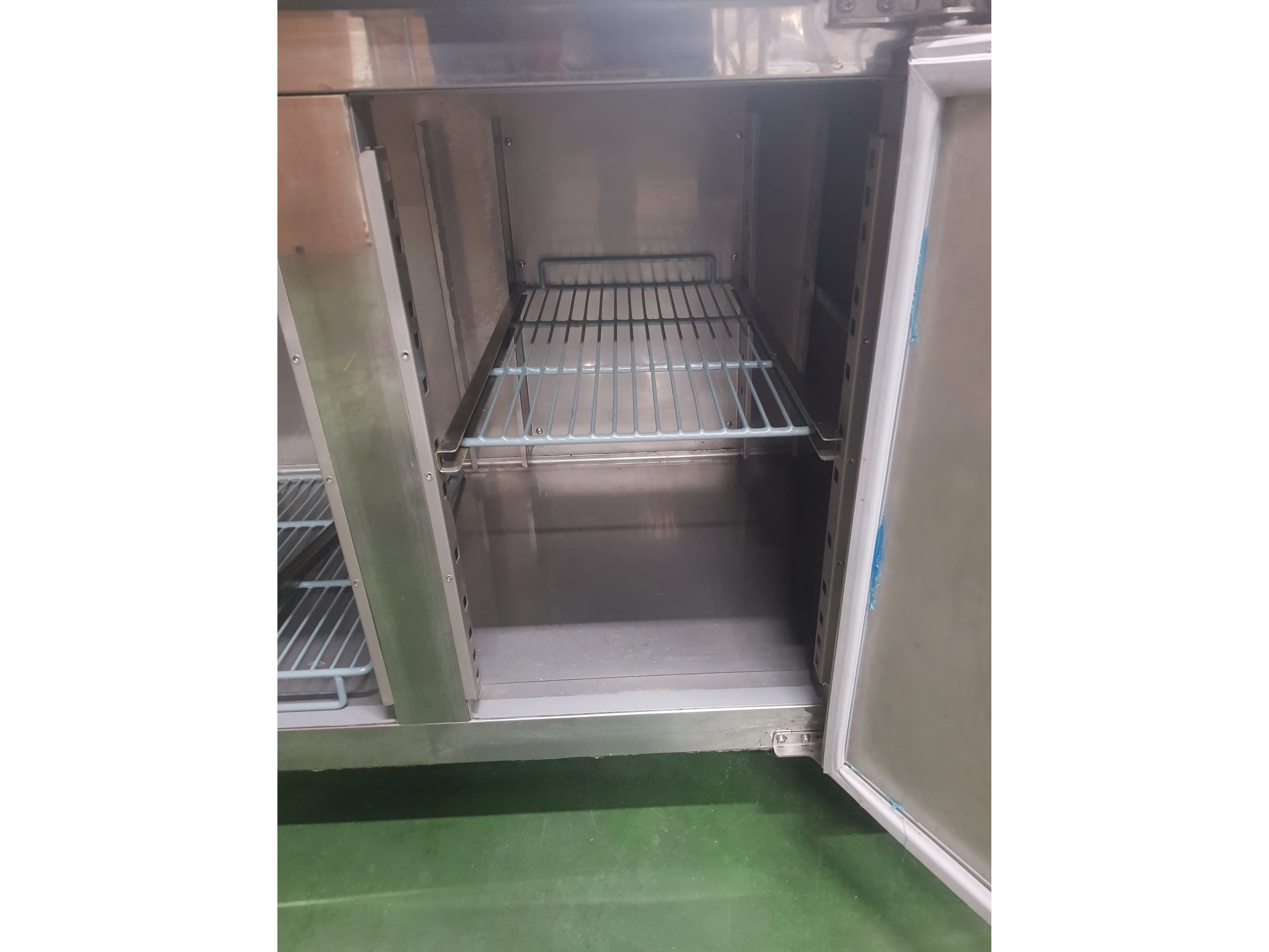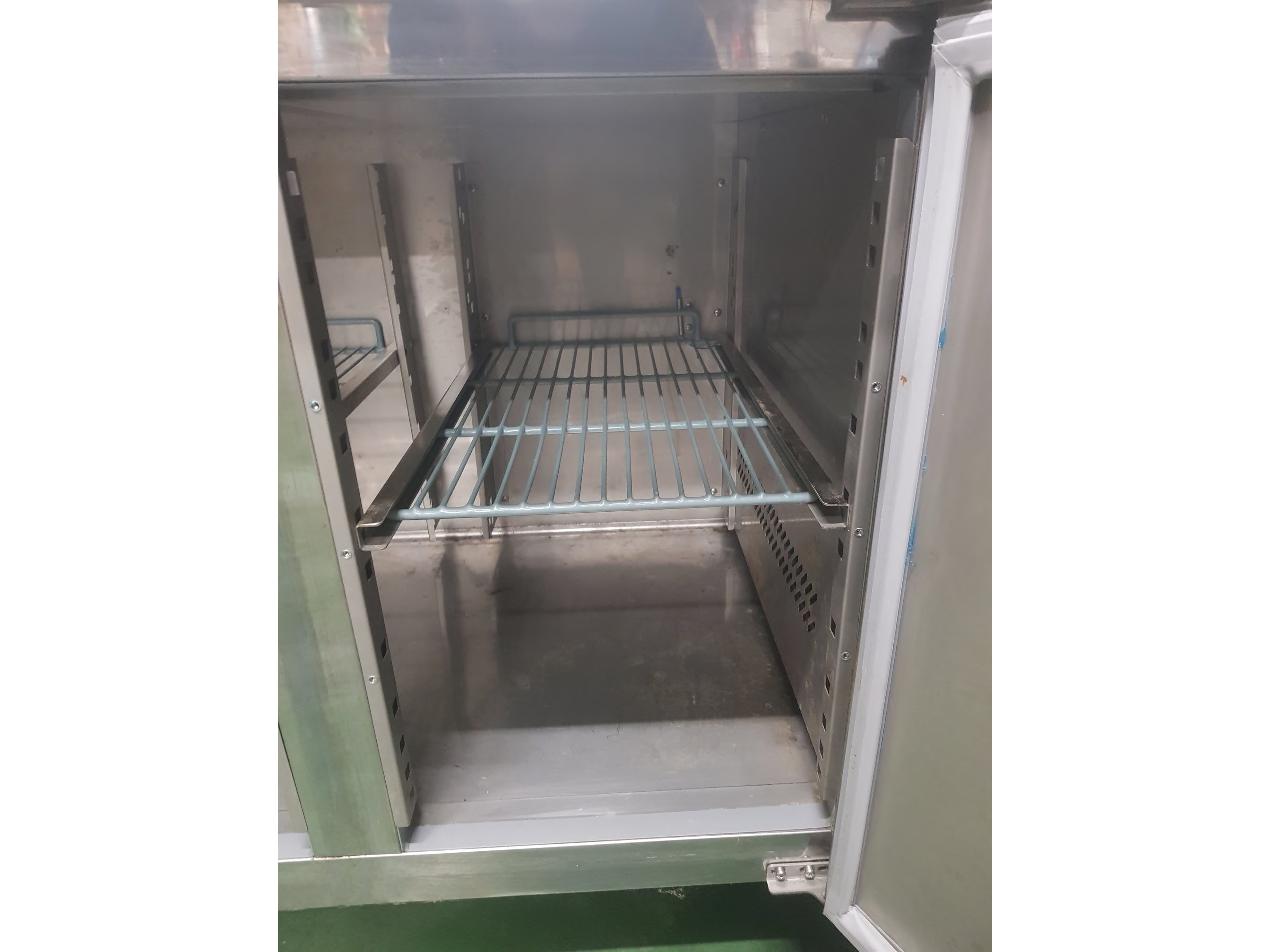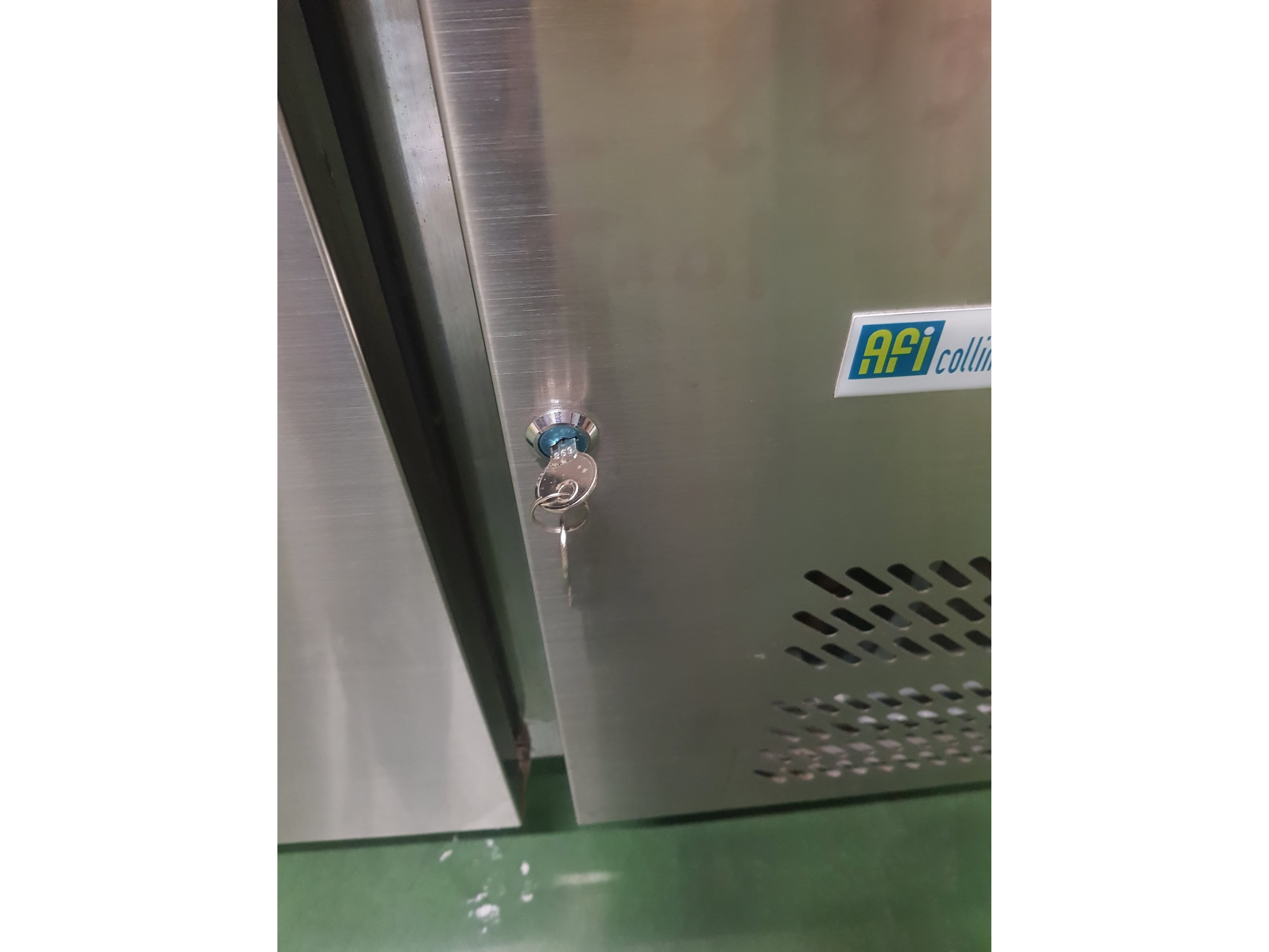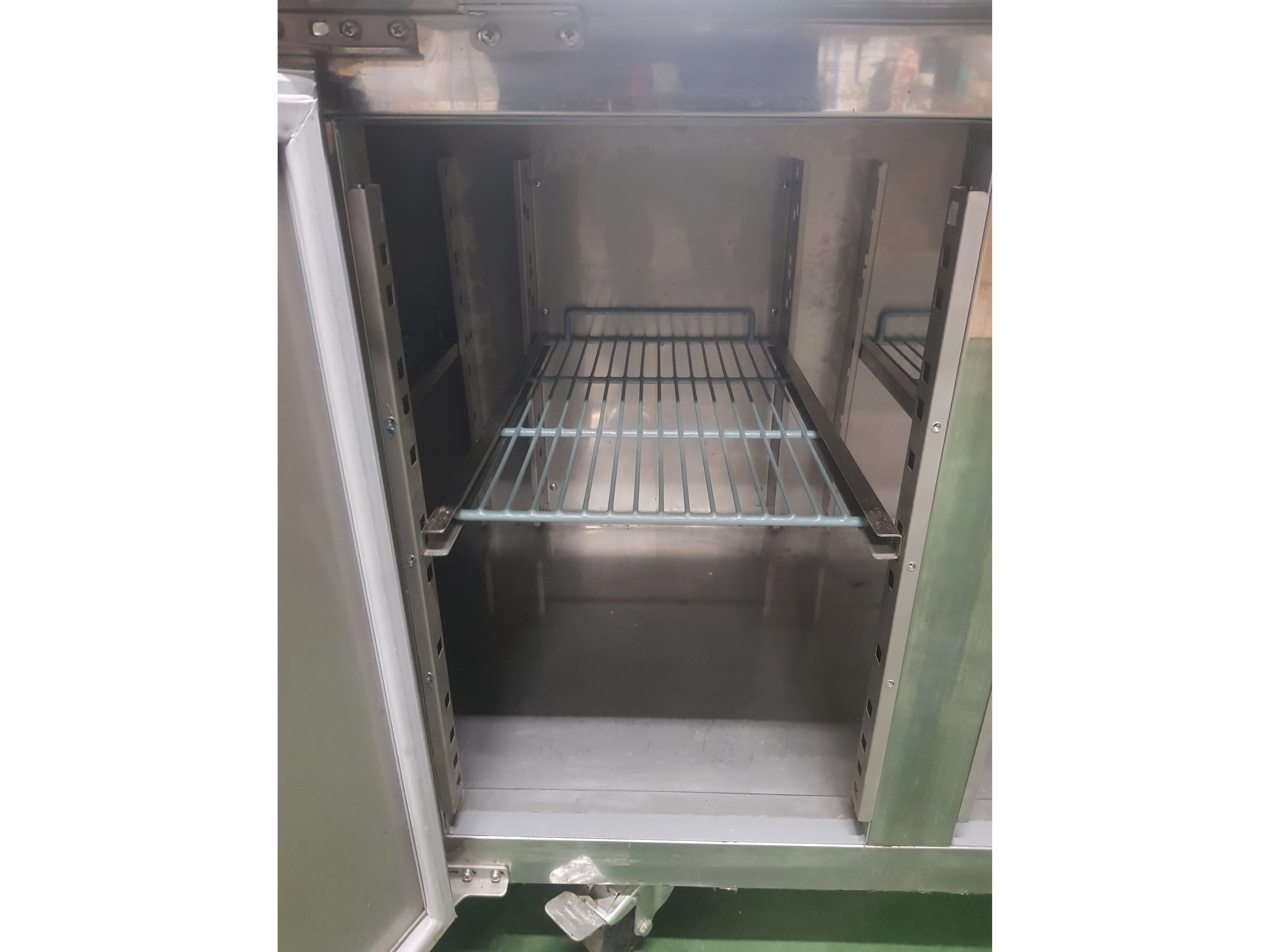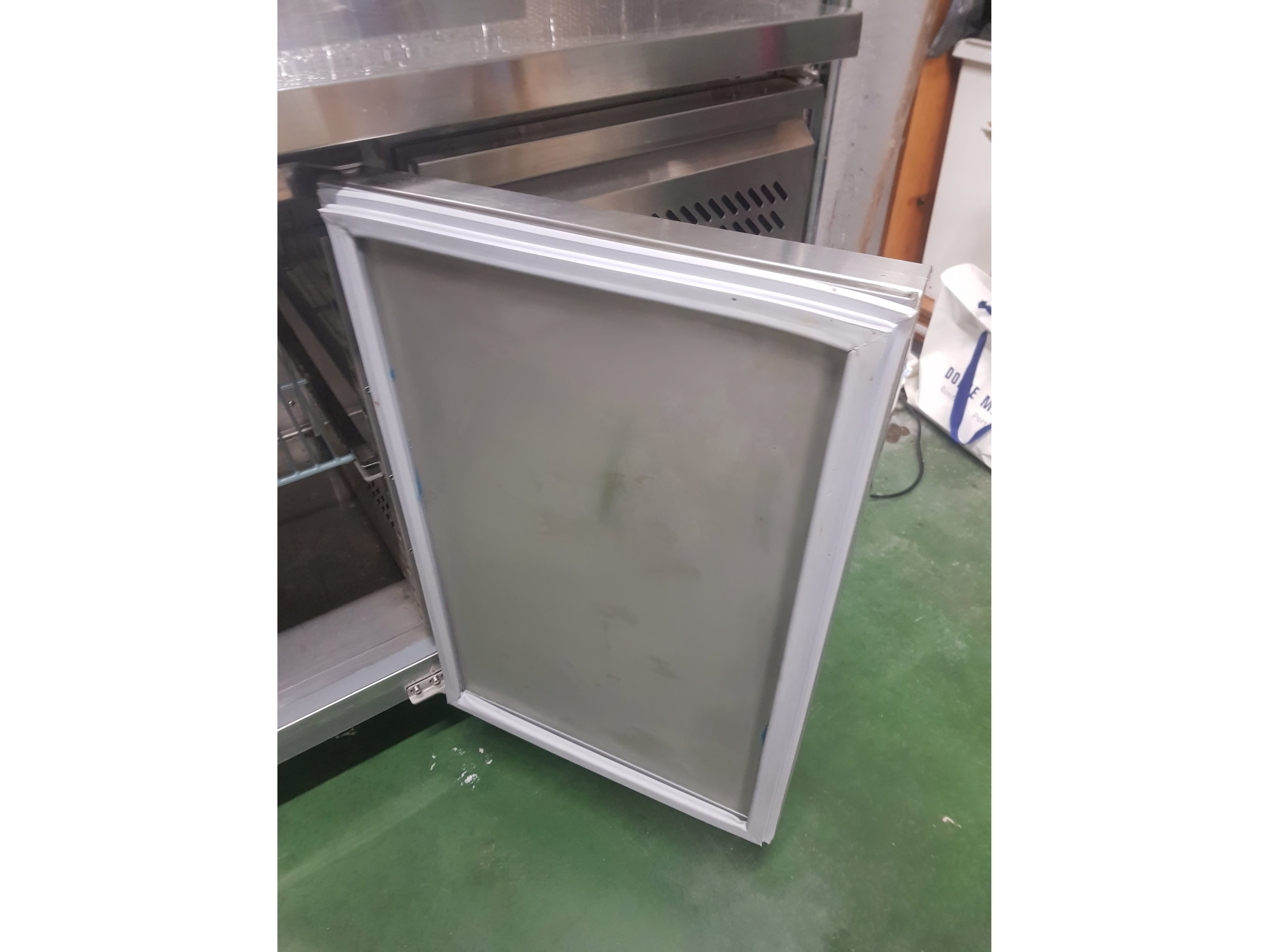 Roestvrijstalen koelkast met onderbouw, in perfecte staat. Alle deurrubbers zijn aanwezig. Er ontbreekt een steunlatje voor een rooster (zie foto), hoewel dit voor grote flessen wel handiger is.<br /> Wordt geleverd met sleutel<br /> Gaat aan en is getest<br /> Afmetingen: 2230 x 700 x 850