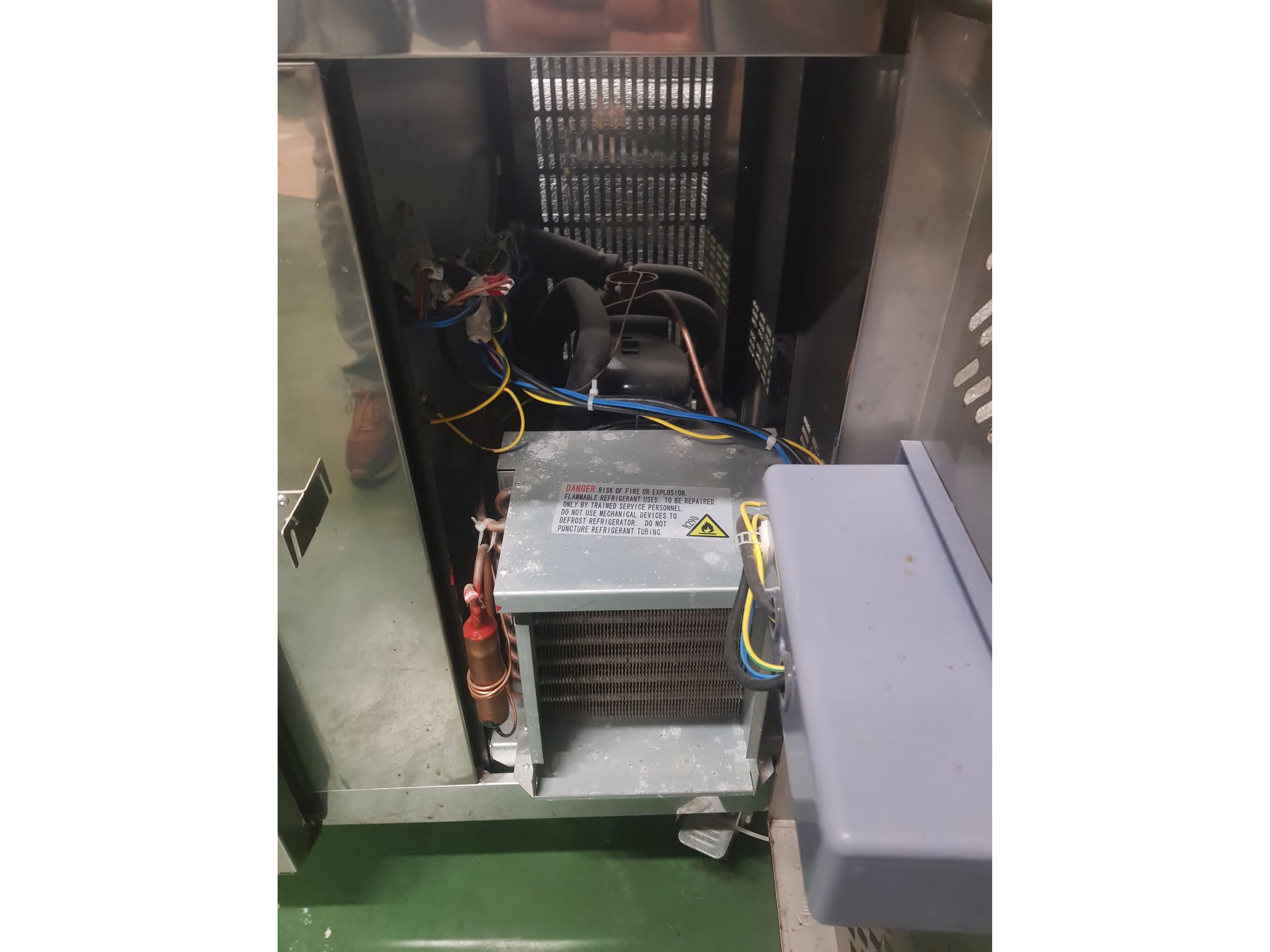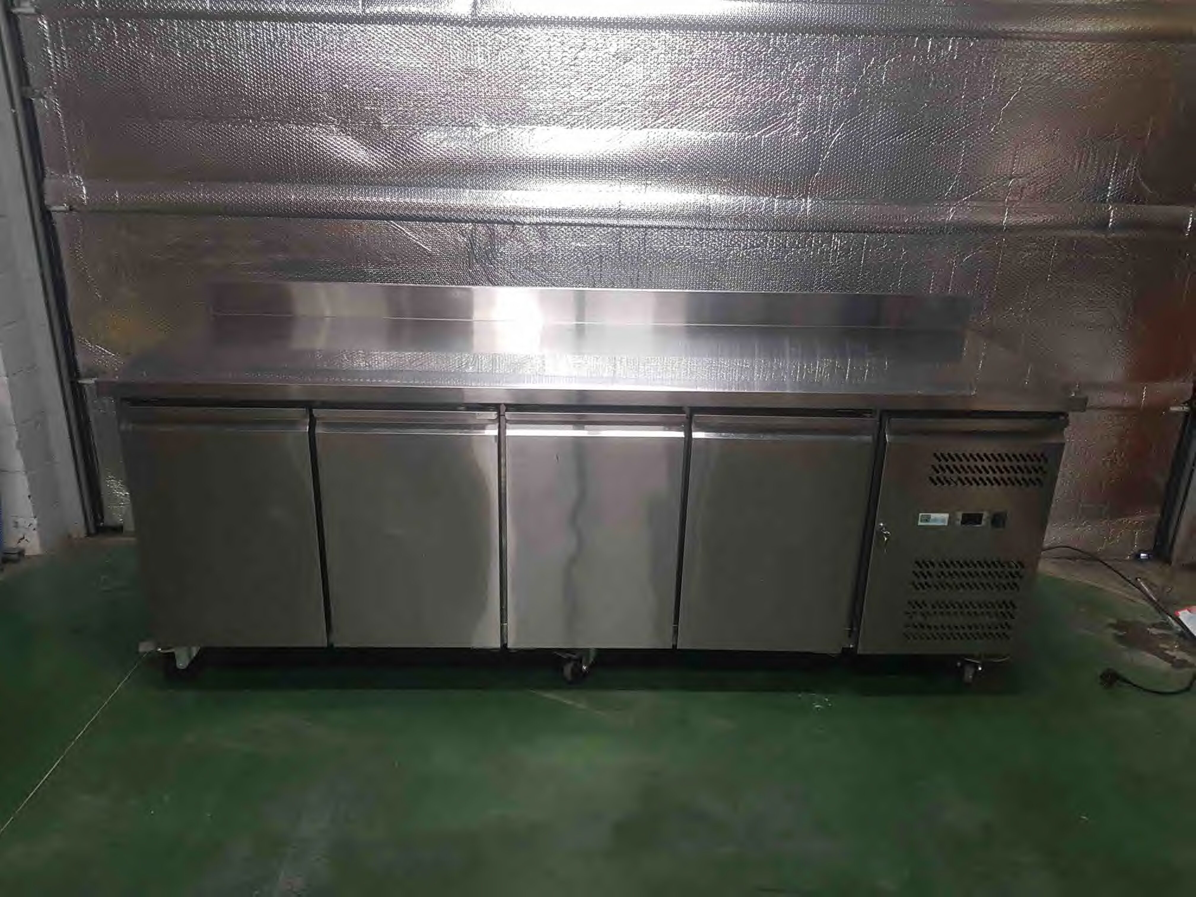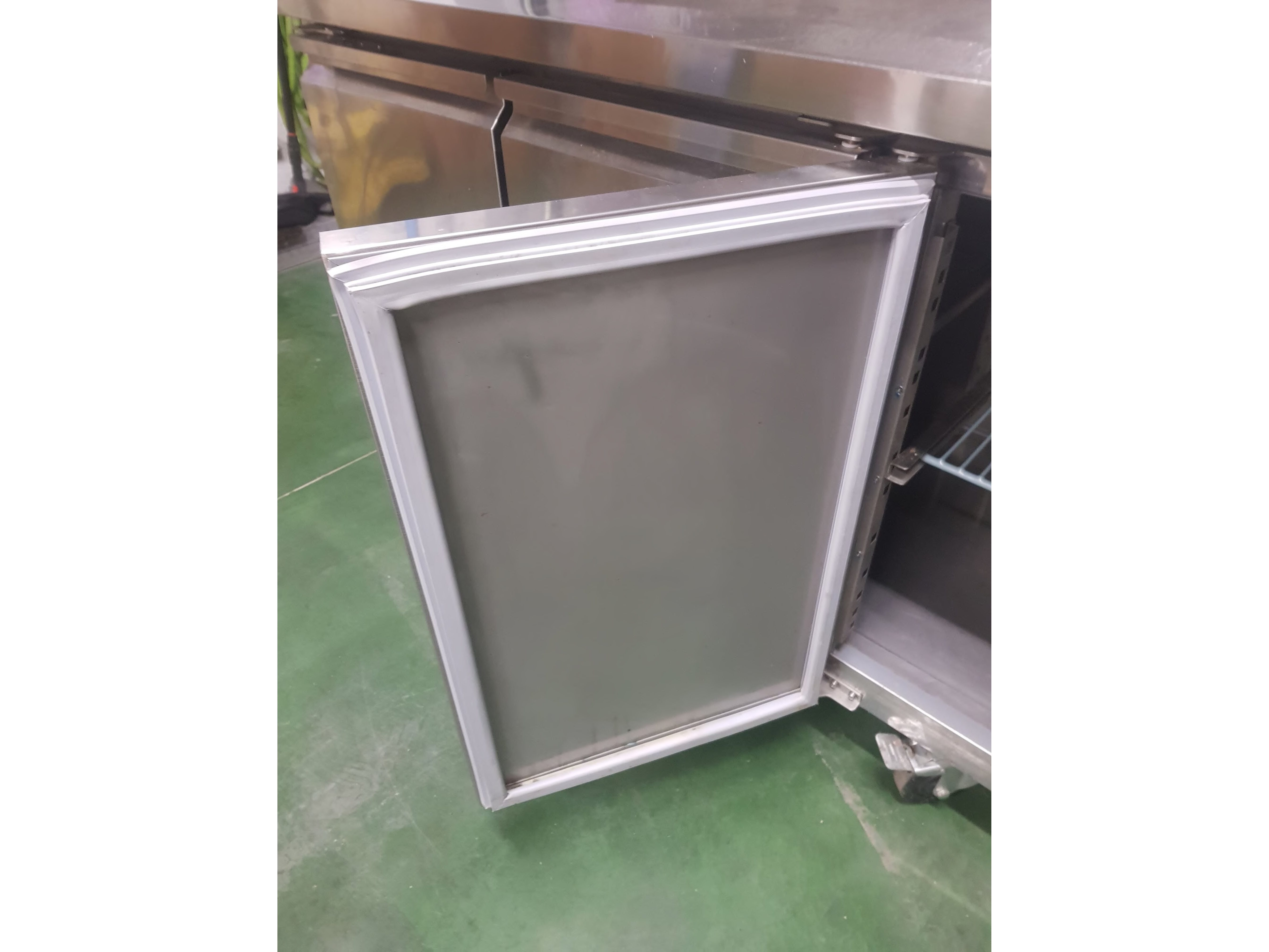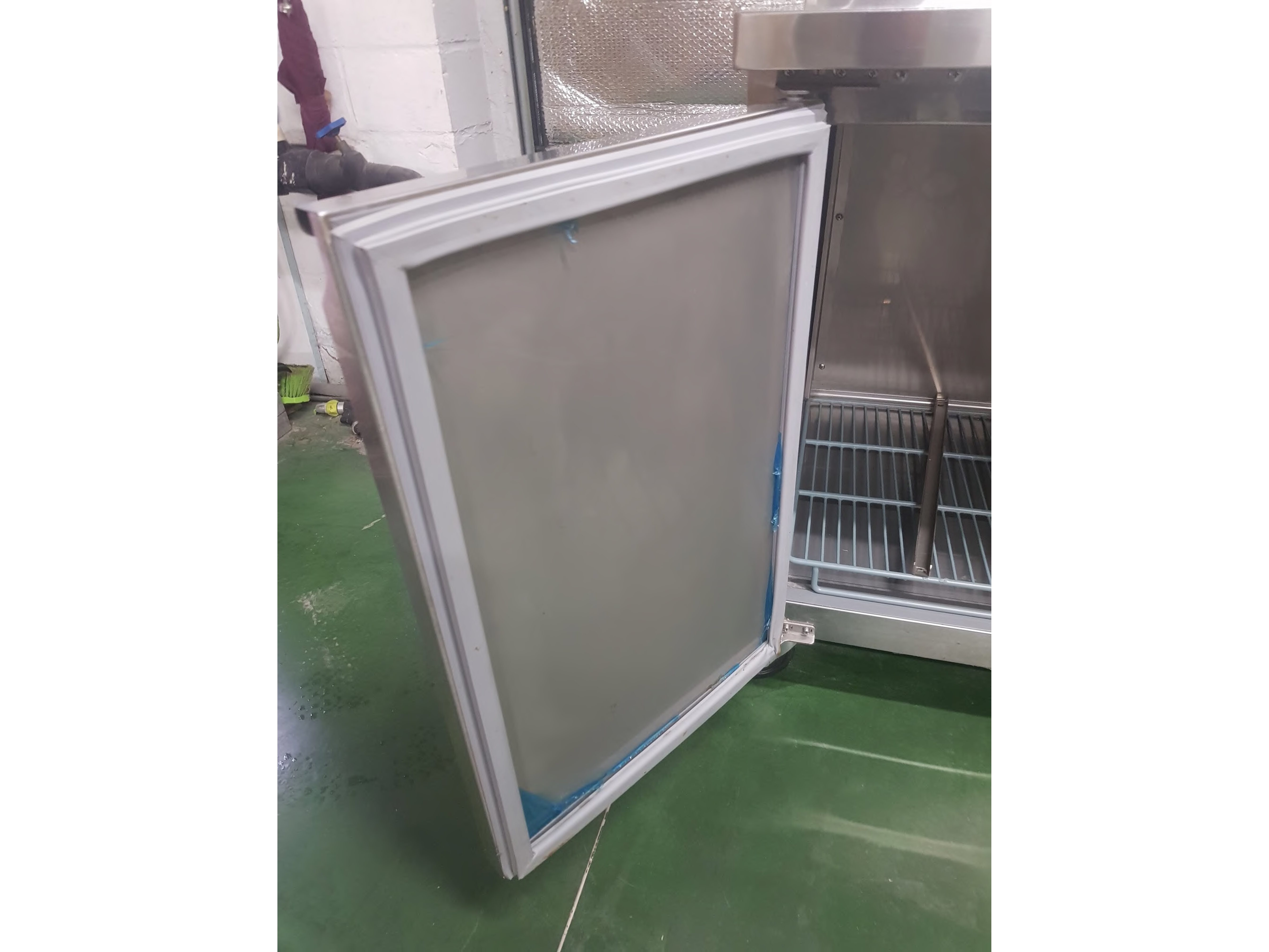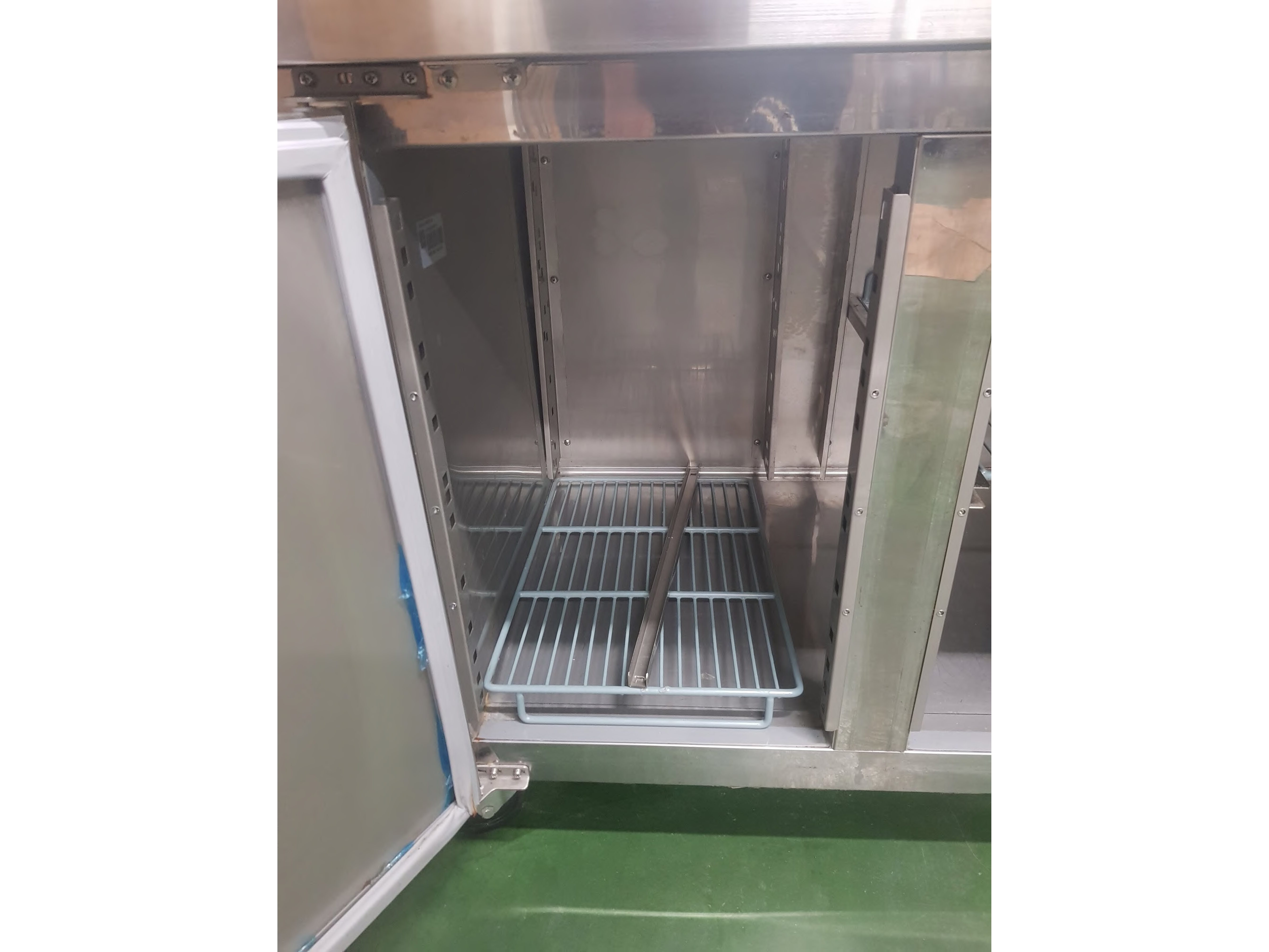 Roestvrijstalen koelkast met onderbouw, in perfecte staat. Alle deurrubbers zijn aanwezig. Er ontbreekt een steunlatje voor een rooster (zie foto), hoewel dit voor grote flessen wel handiger is.<br /> Wordt geleverd met sleutel<br /> Gaat aan en is getest<br /> Afmetingen: 2230 x 700 x 850