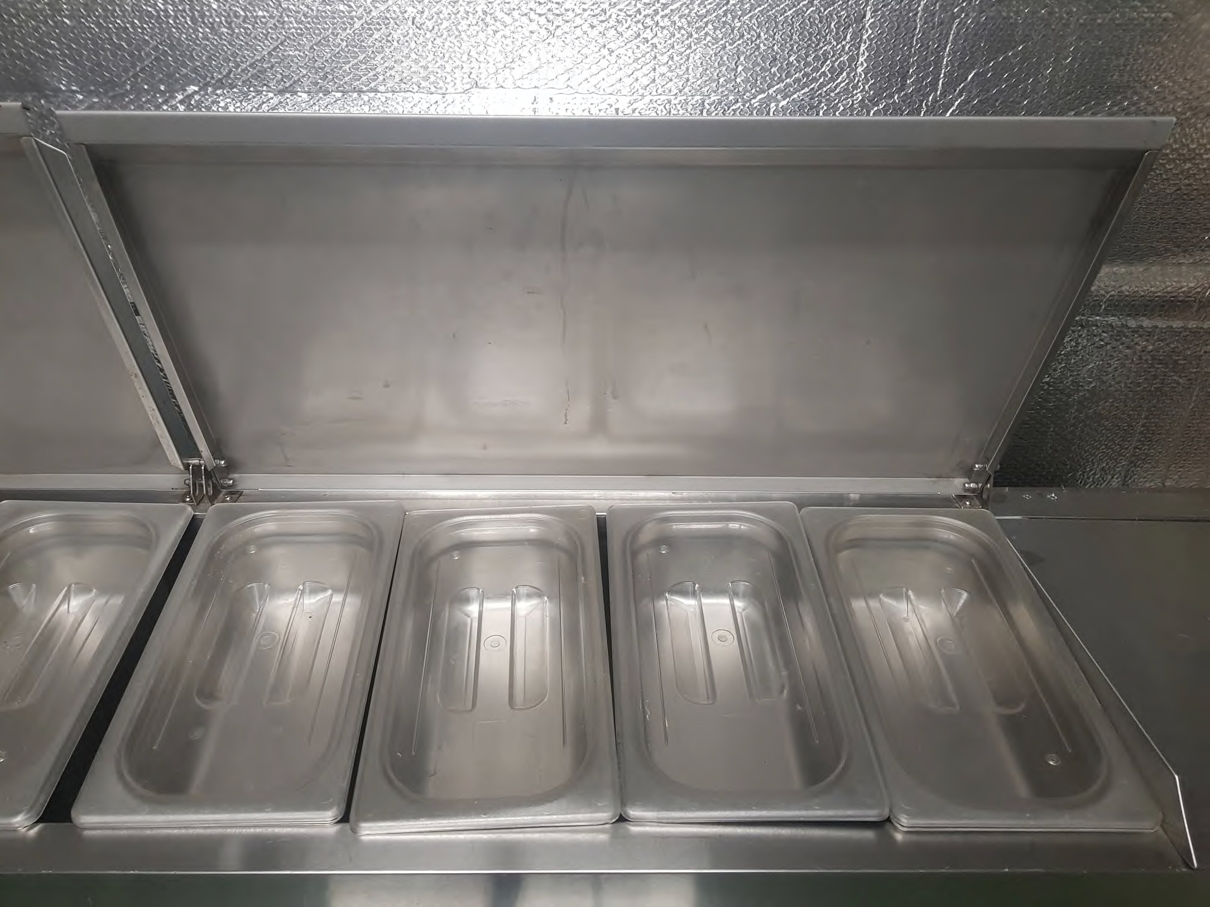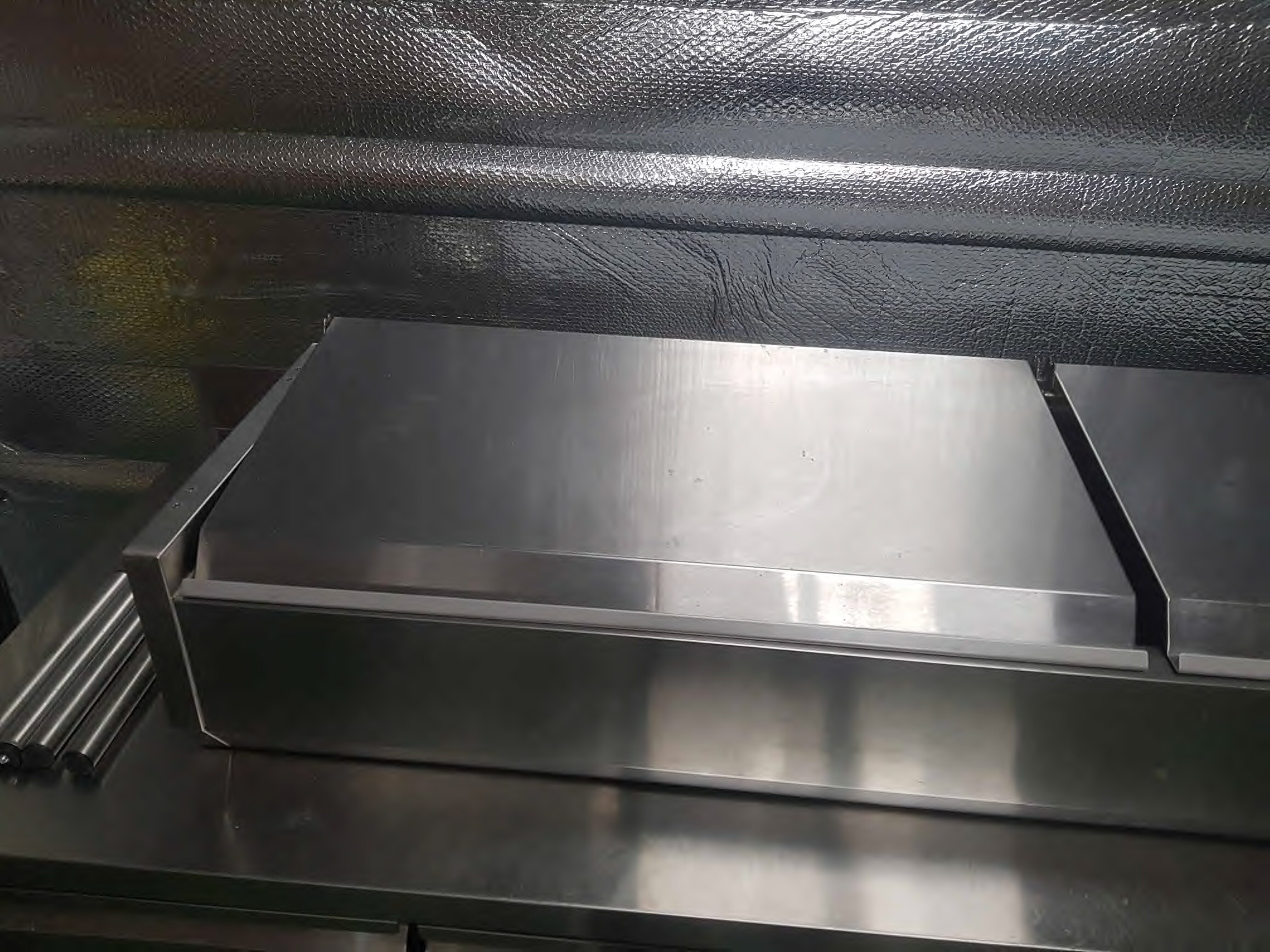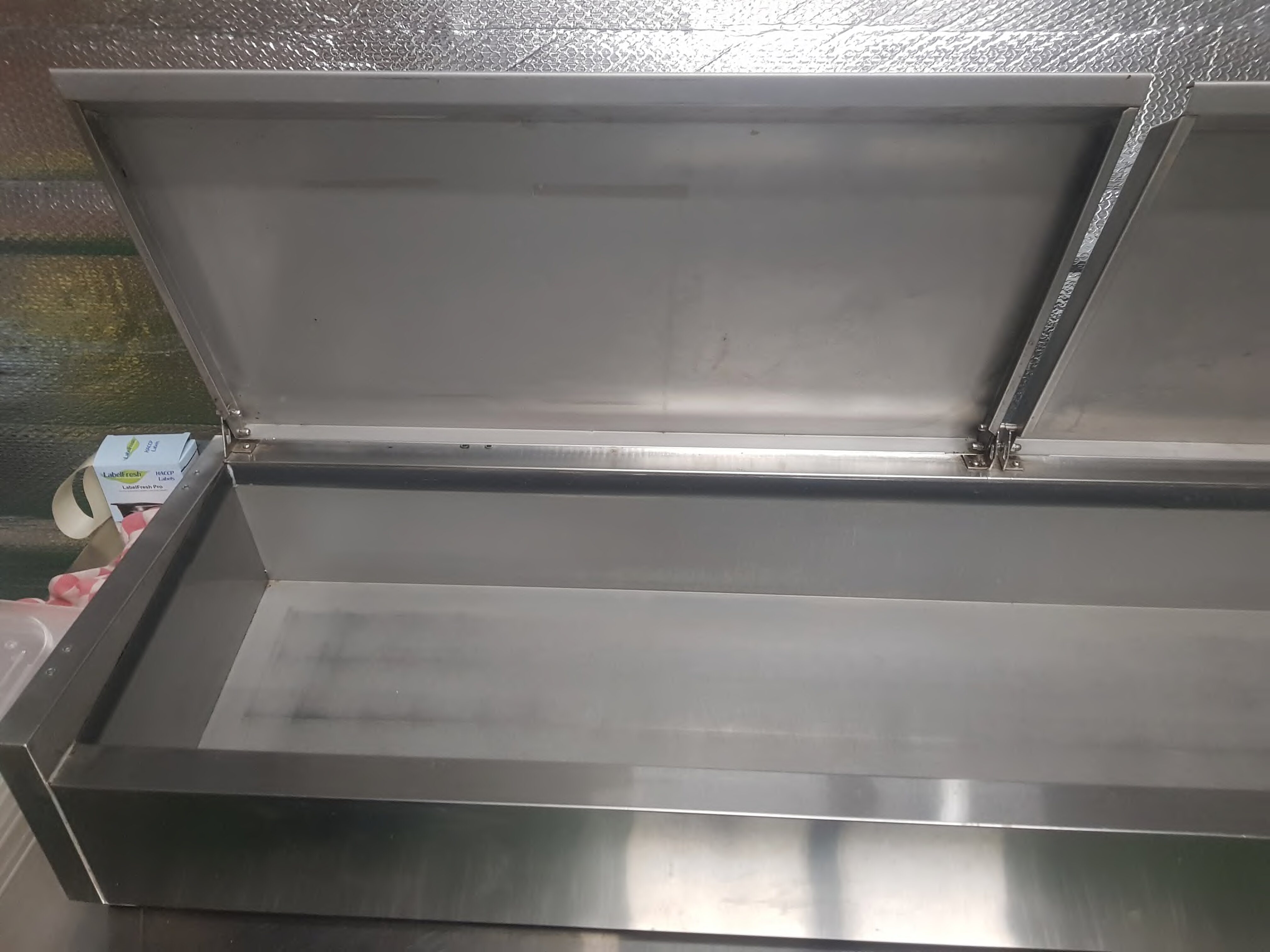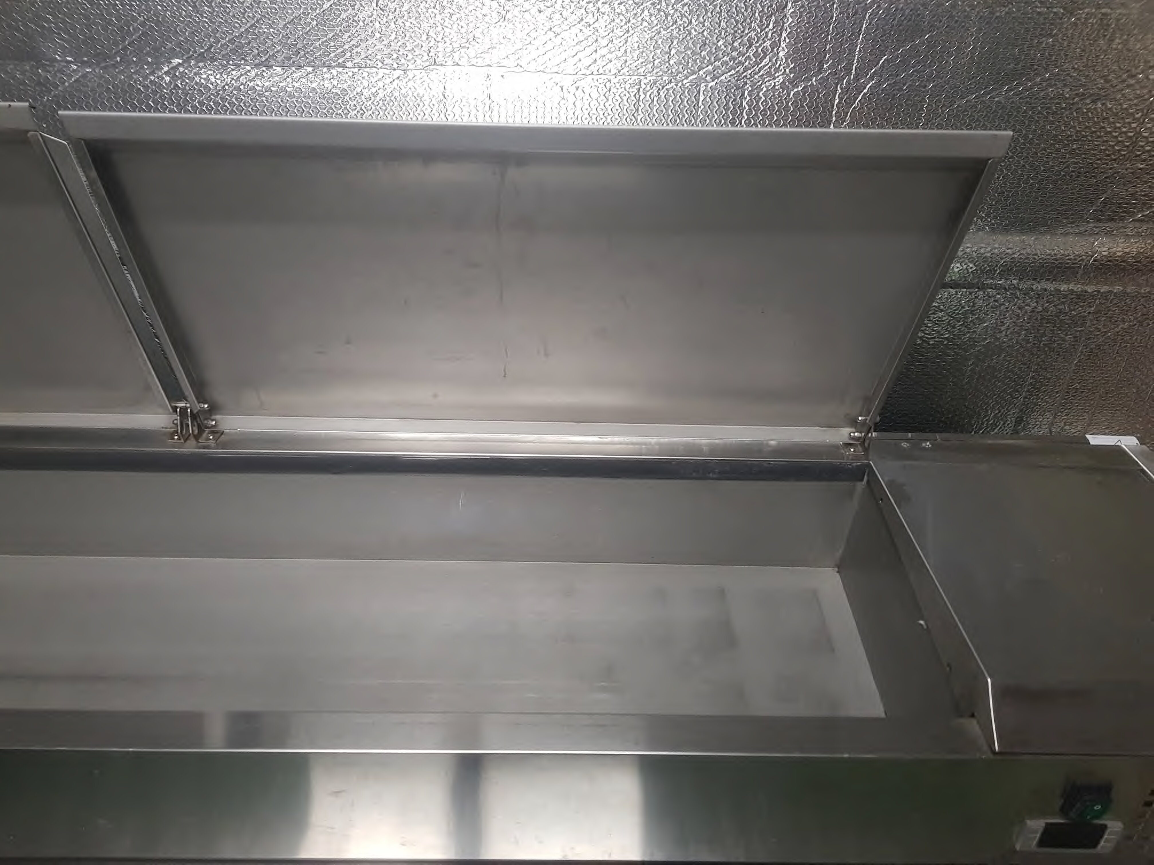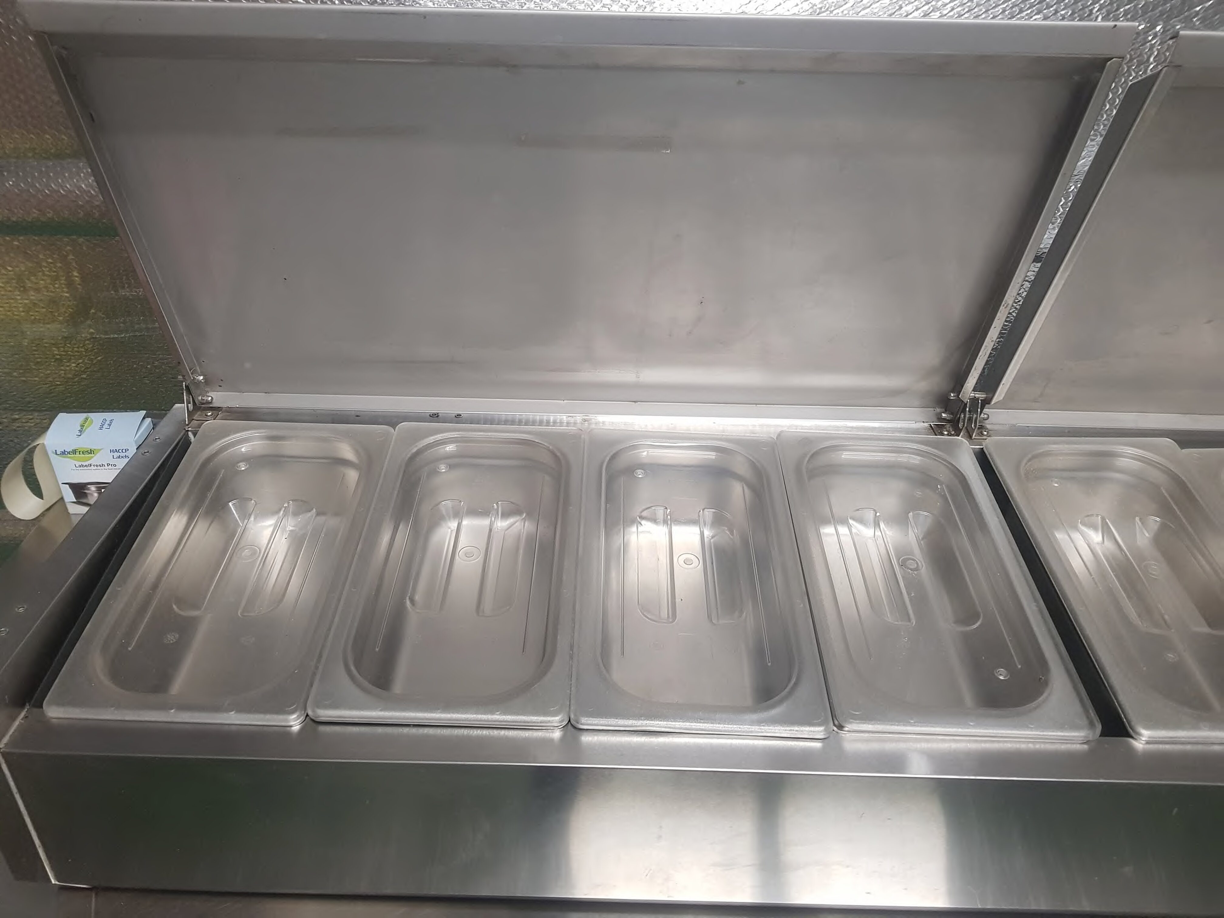 Tweedehands roestvrijstalen saladette.<br /> Werkt en is getest<br /> Afmetingen: 1800 x 400 x 250