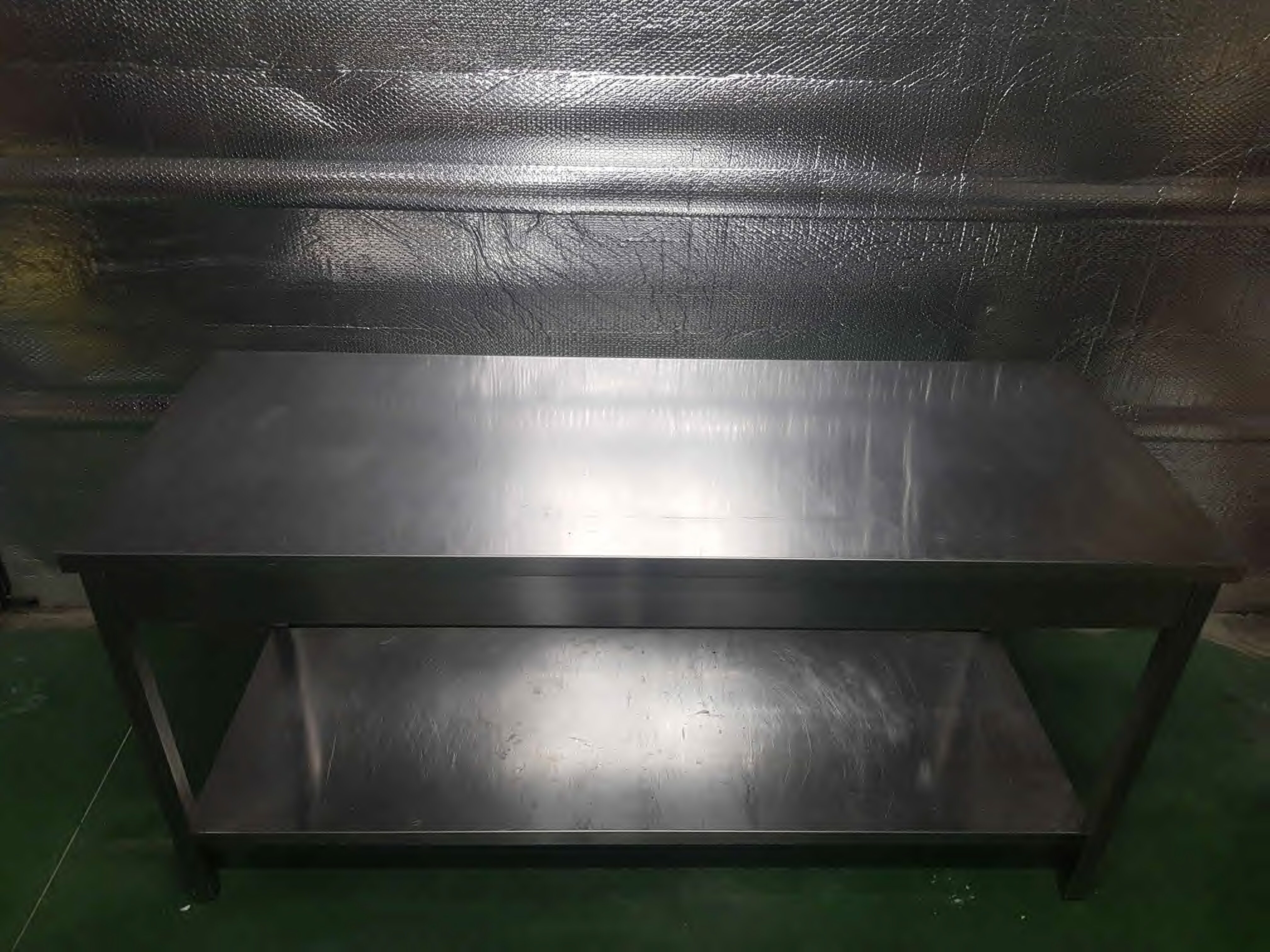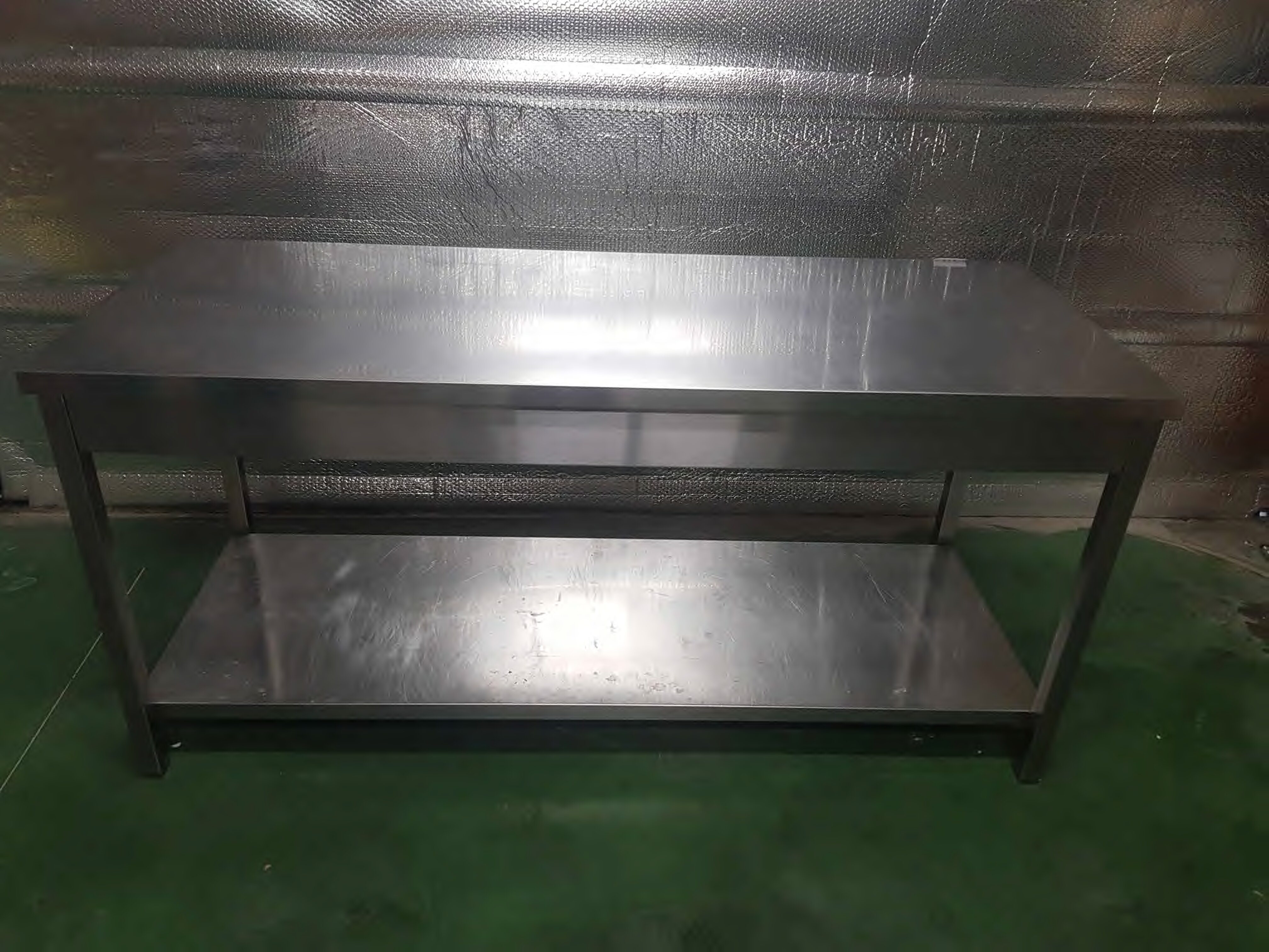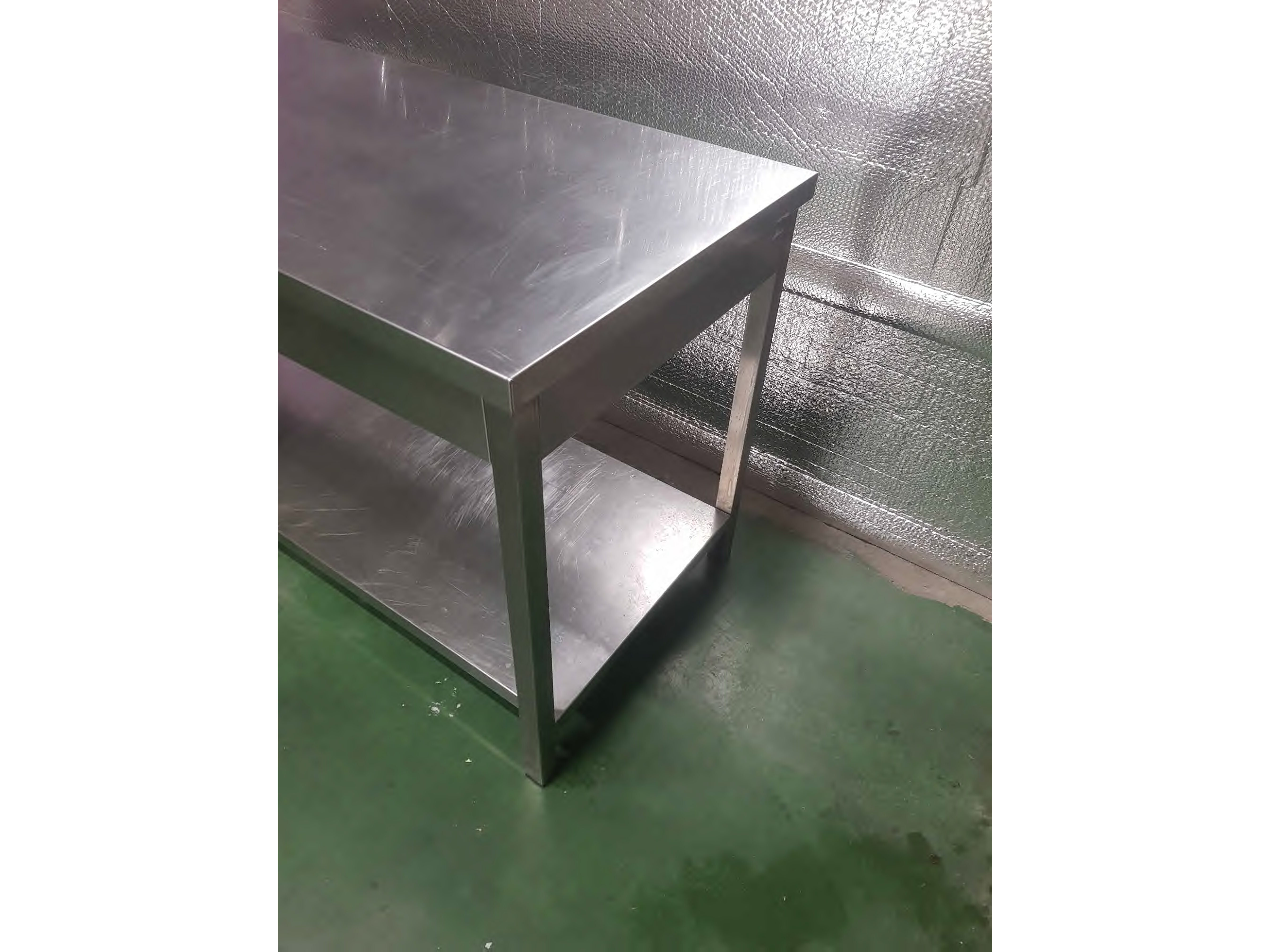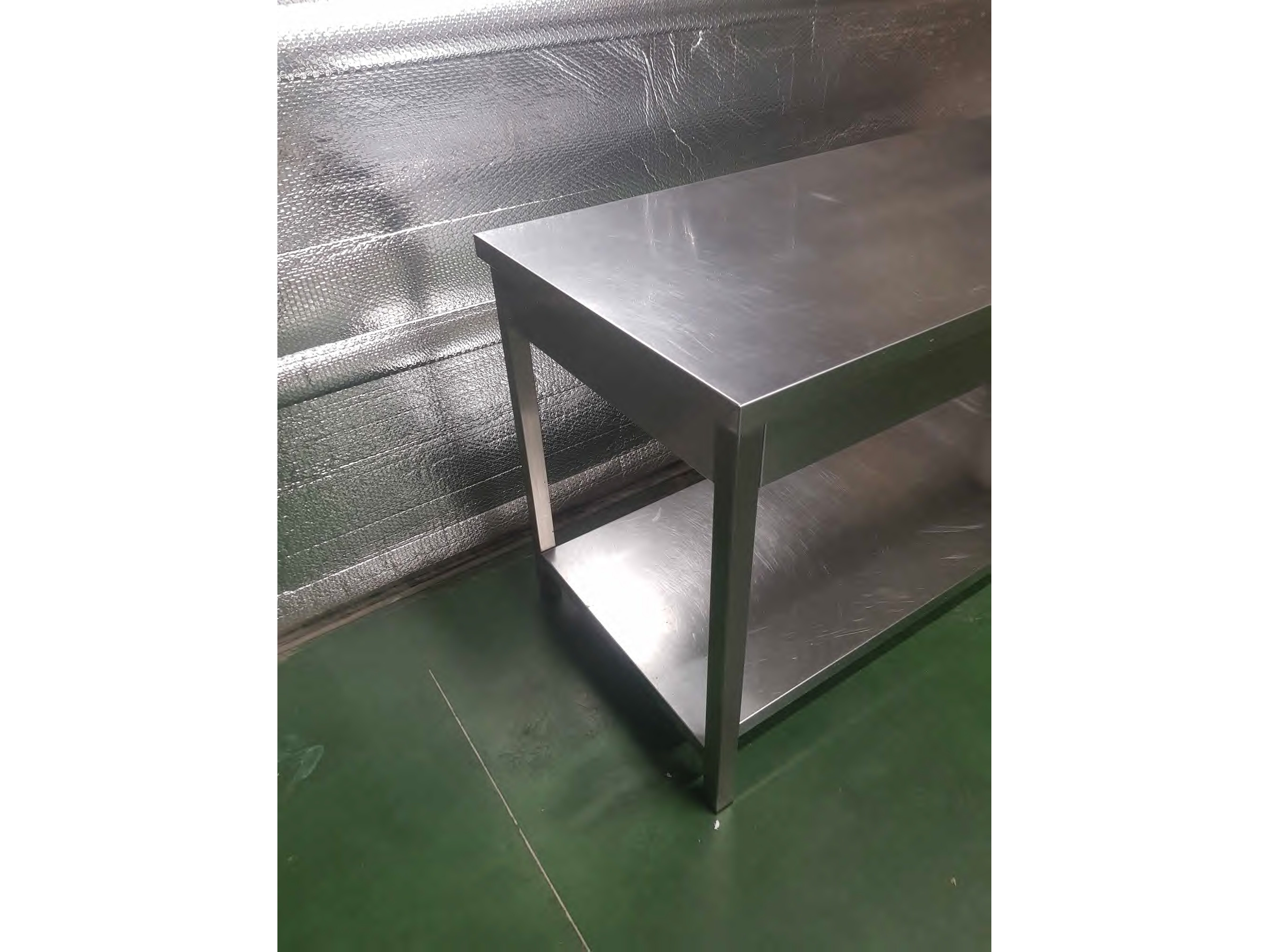 Roestvrijstalen tafel met twee niveaus<br /> Afmetingen: 1800 x 700 x 870