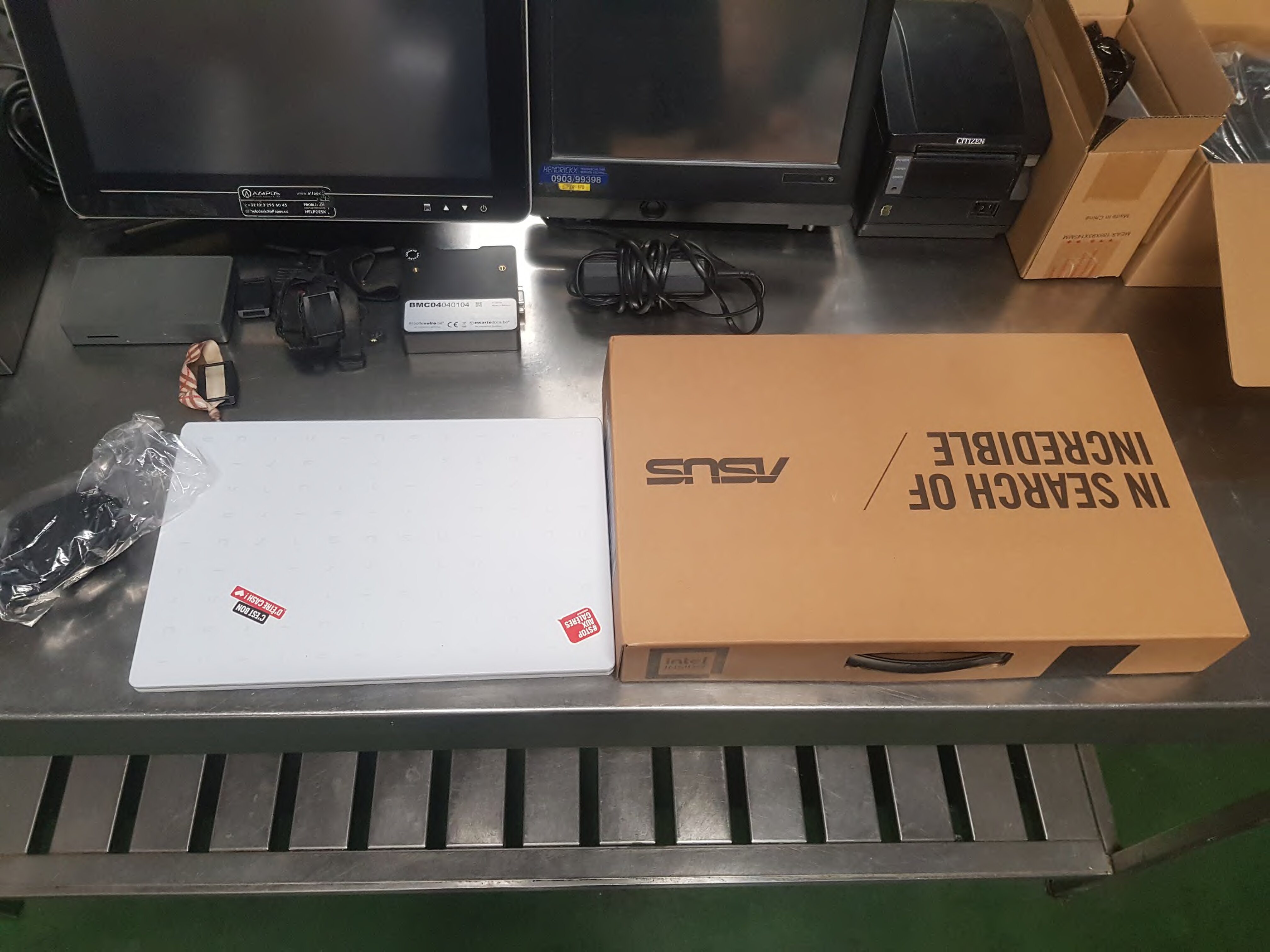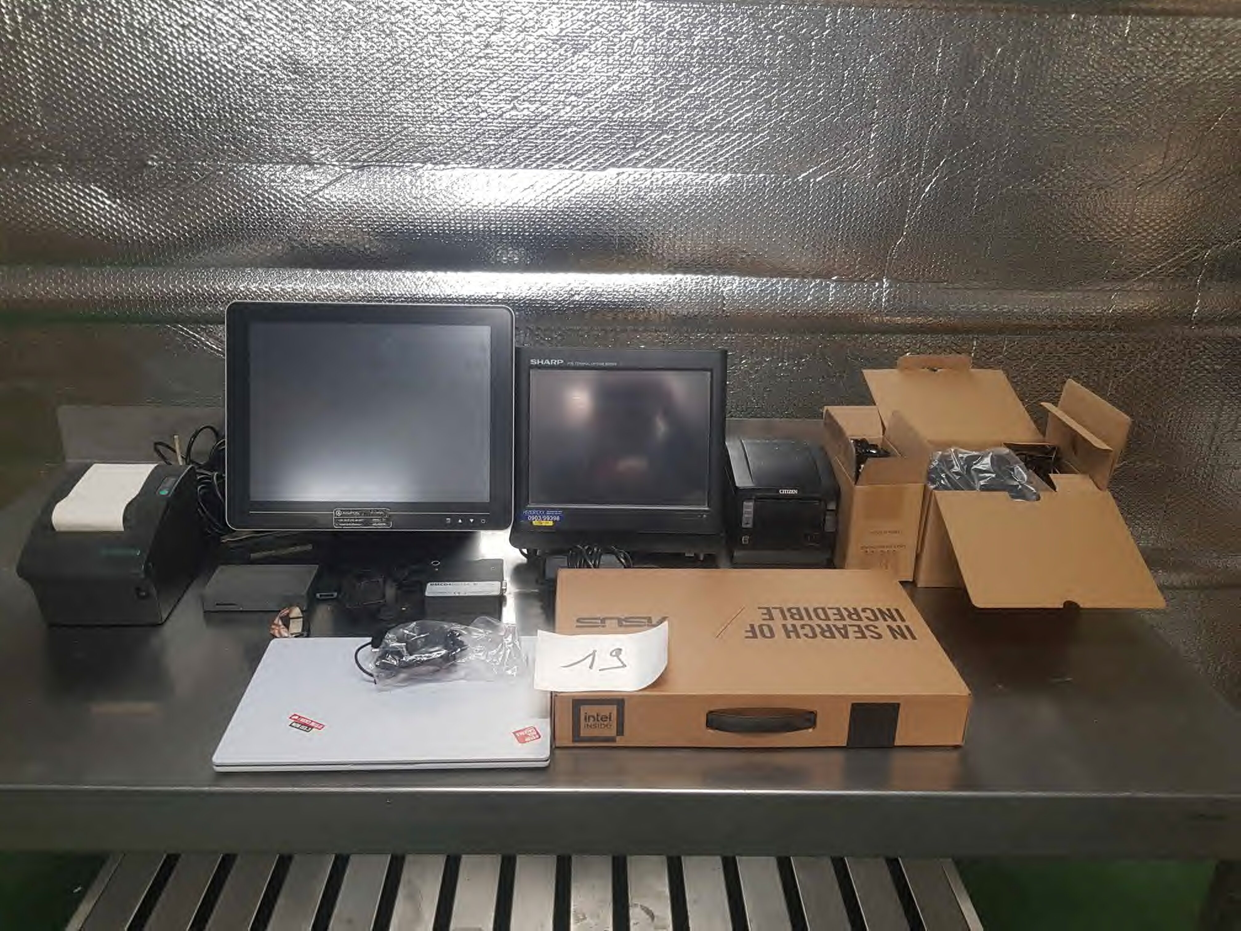 Twee tweedehands kassa's die wel opstarten, maar niet zijn getest.<br /> Een tweedehands Azus-computer die werkt, maar alleen via de stroomkabel.<br /> Een Phomemo D450B thermische printer die nauwelijks is gebruikt, inclusief een reserve-etiket van 4 cm x 6 cm