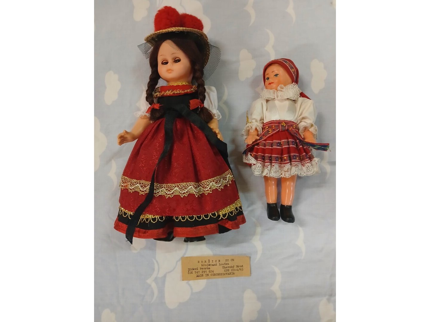 Set van 2 vintage poppen in traditionele klederdracht, afkomstig uit Tsjechoslowakije