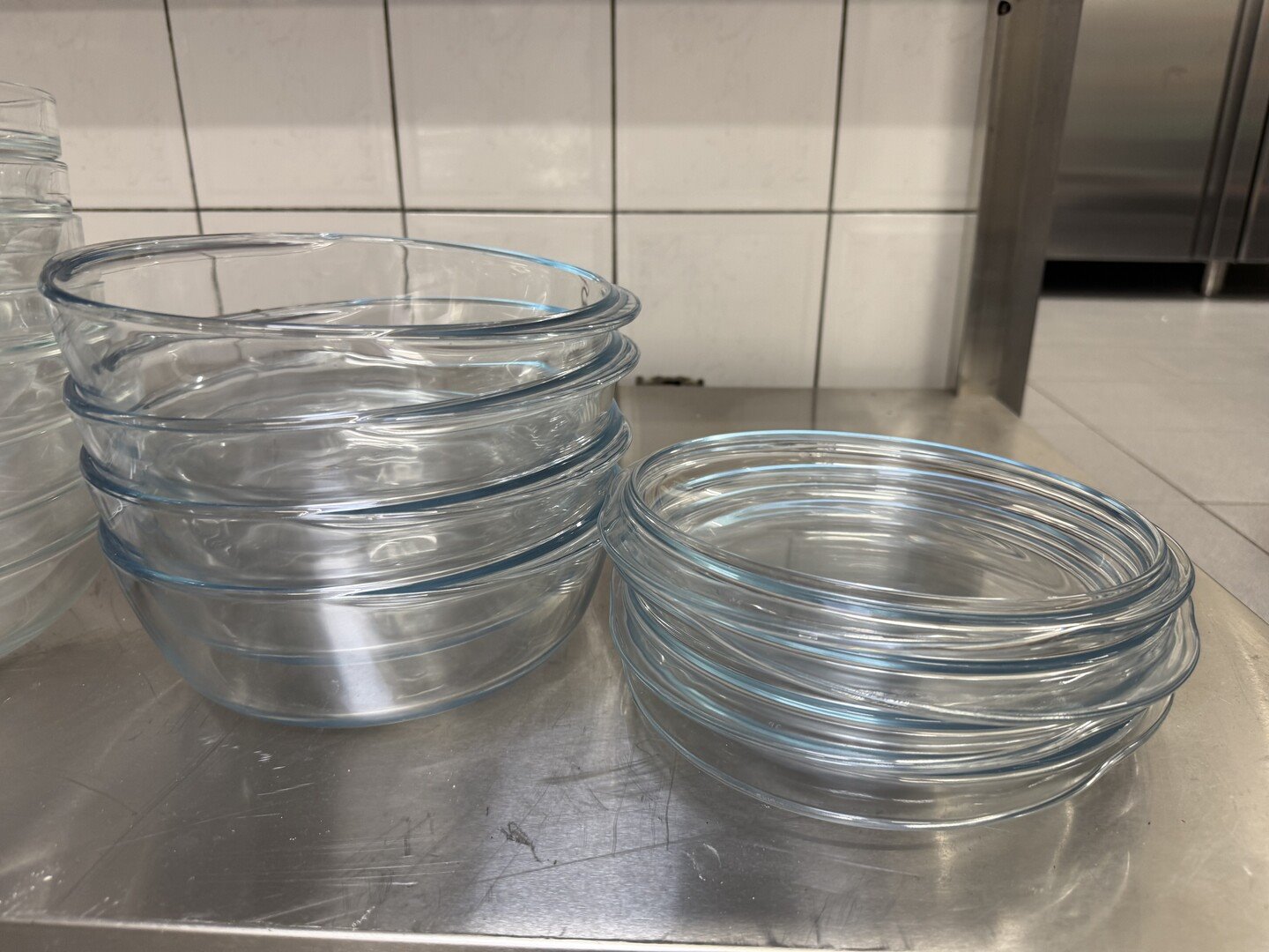 Reeks glazen kommen, o.a. met deksels