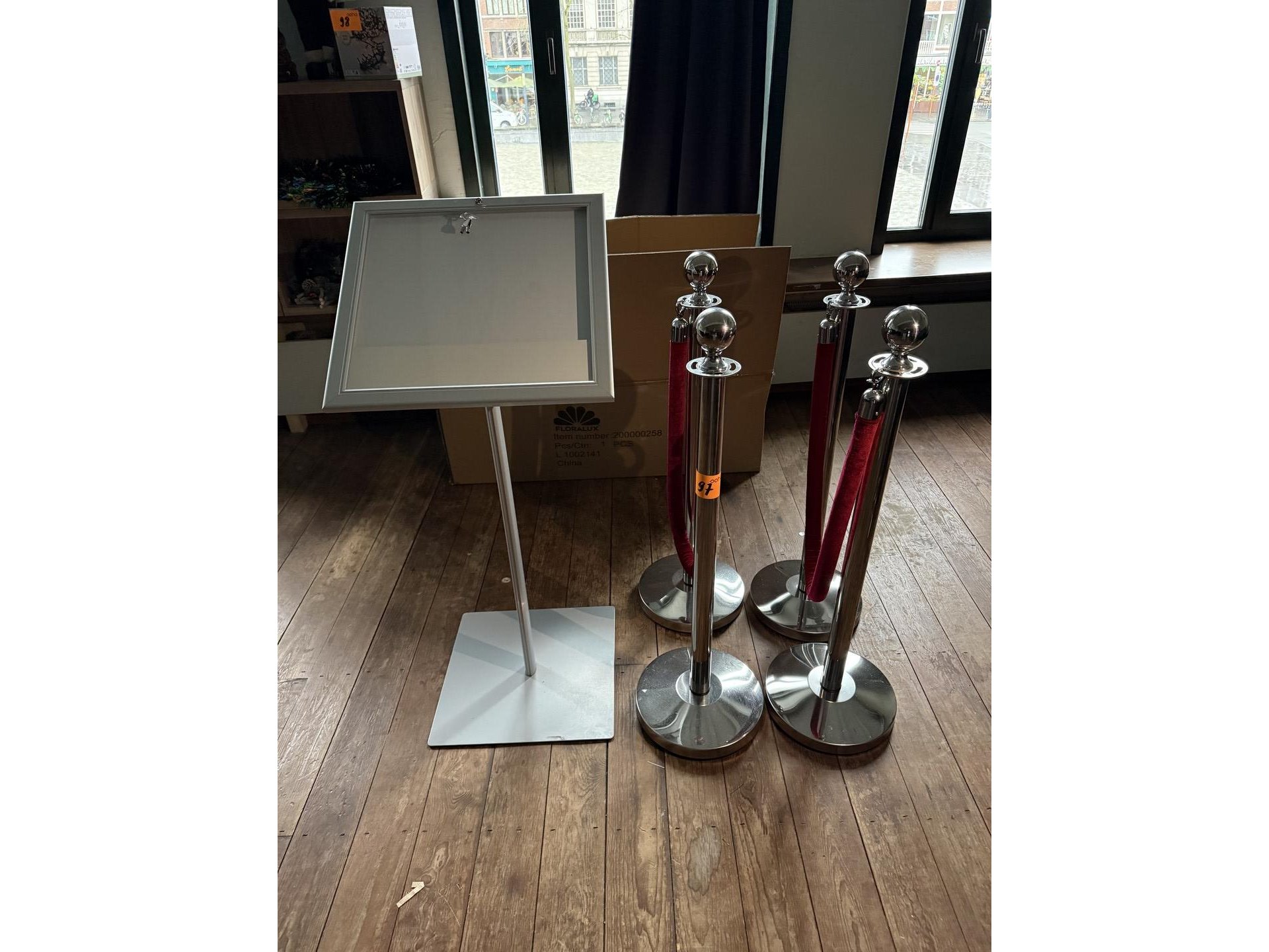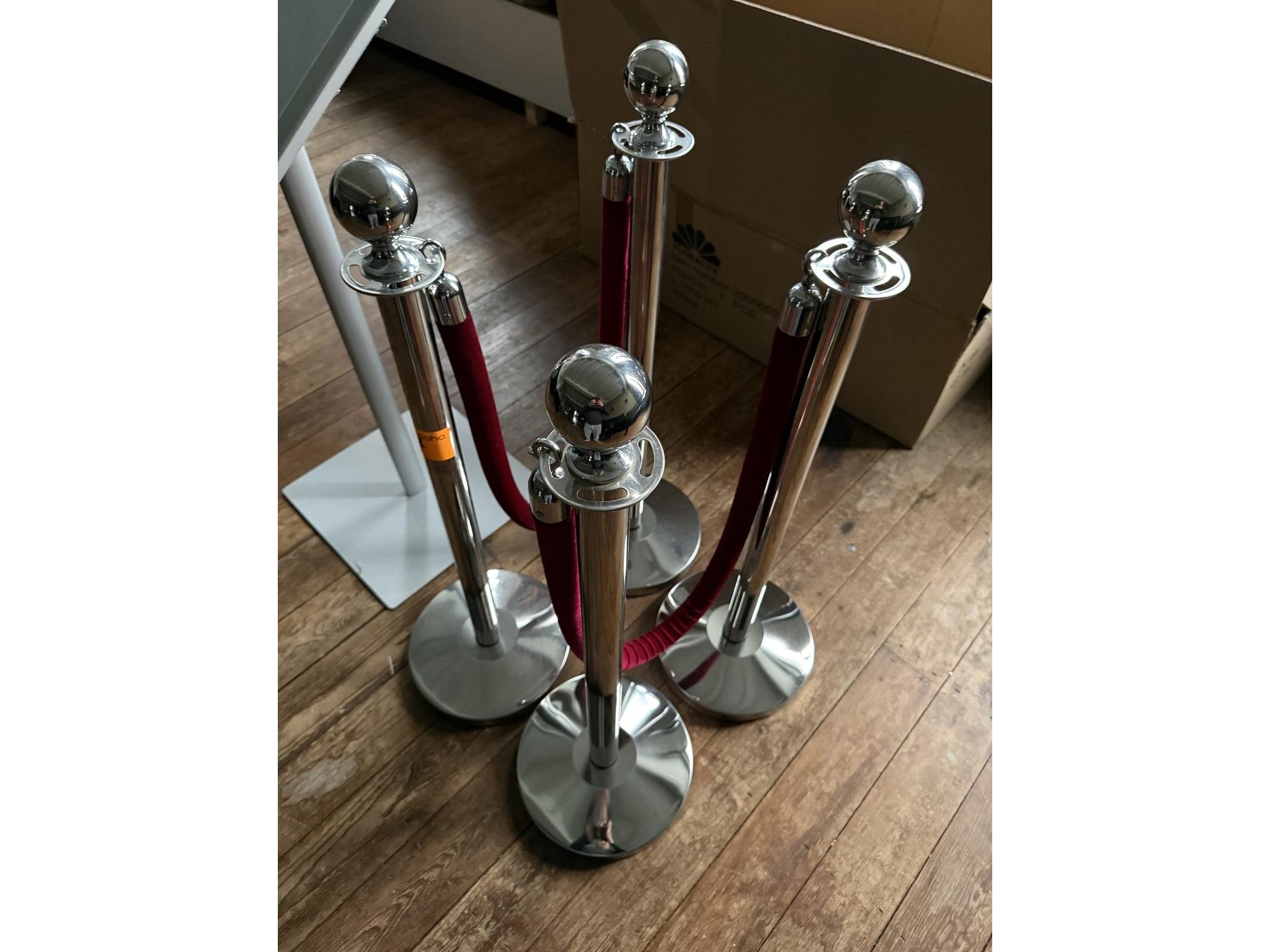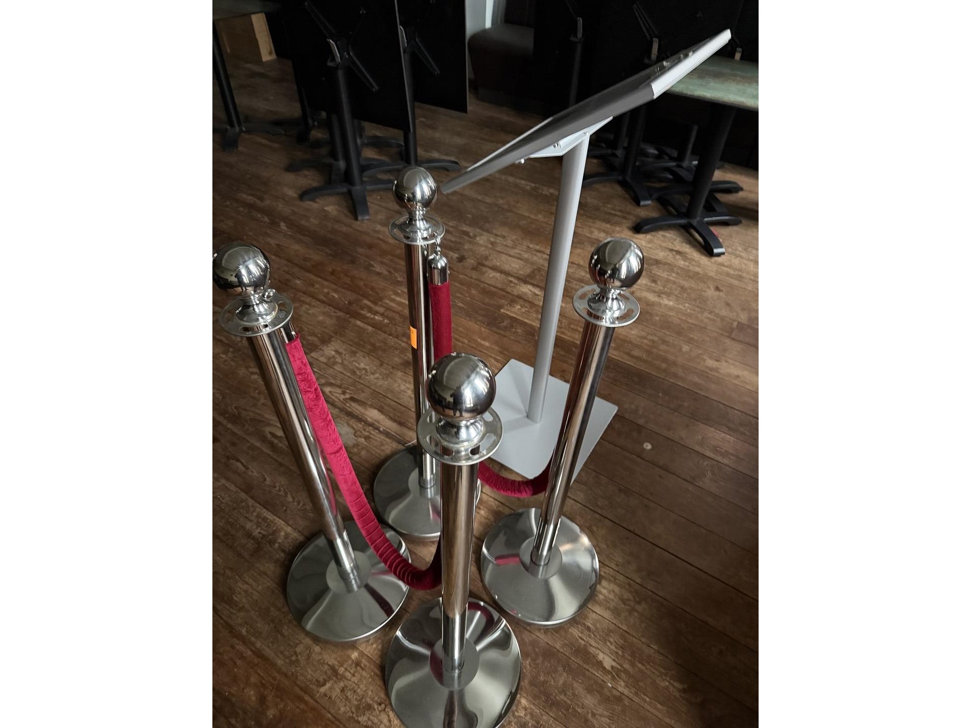 2 sets van telkens 2 afzetpaaltjes, met sierlijke roodkleurige afzetkoord<br /> + menubod op centrale poot