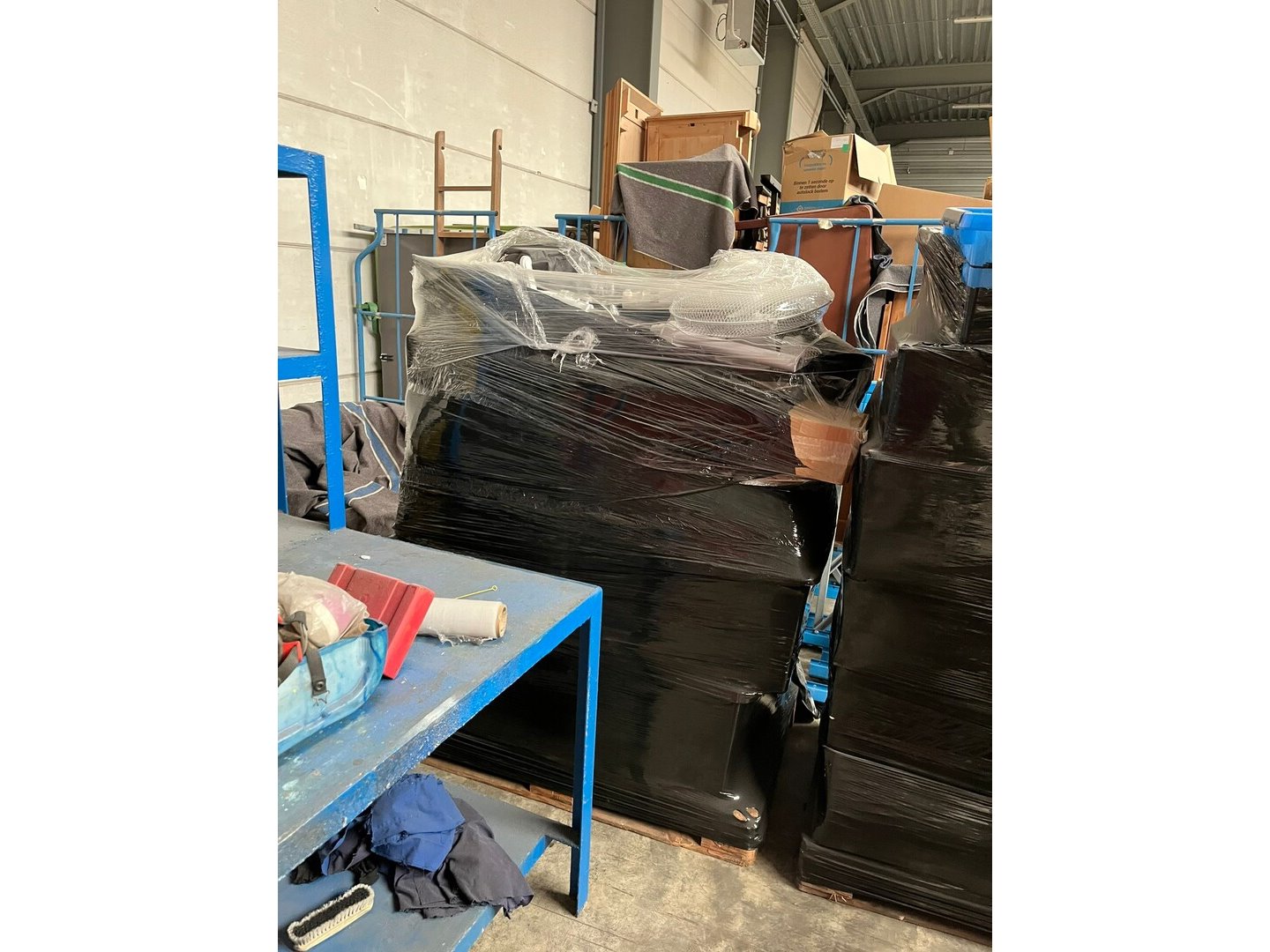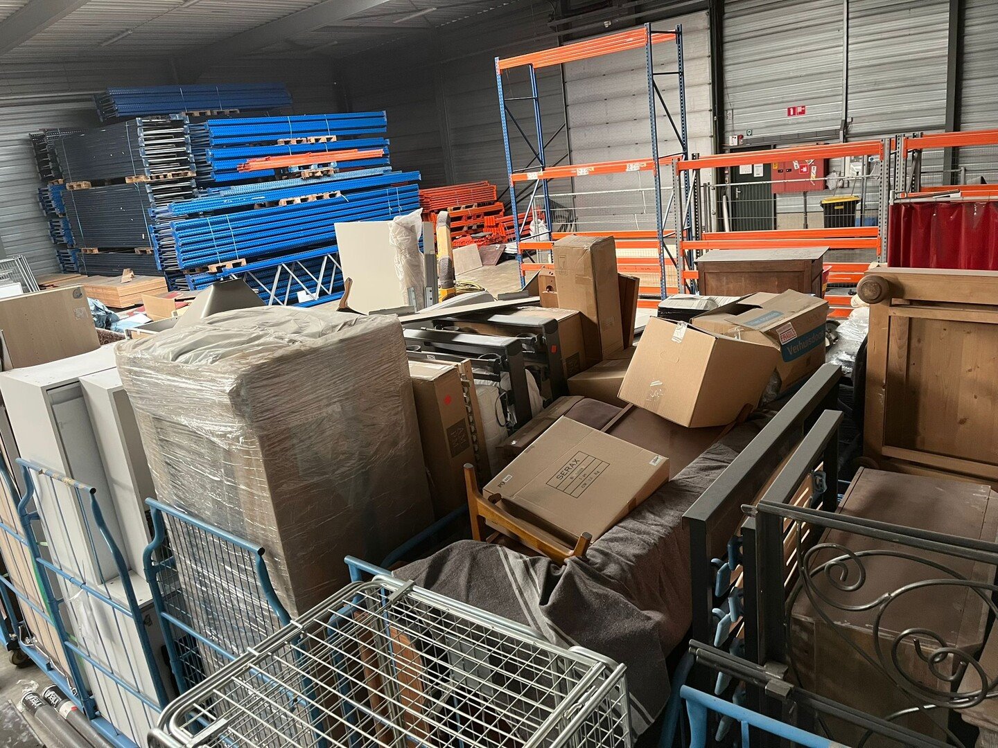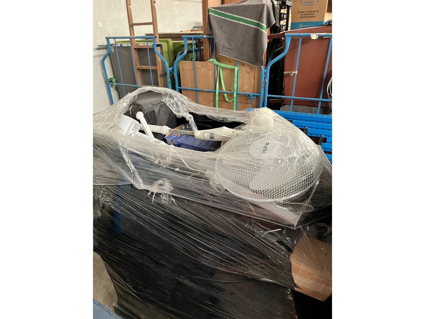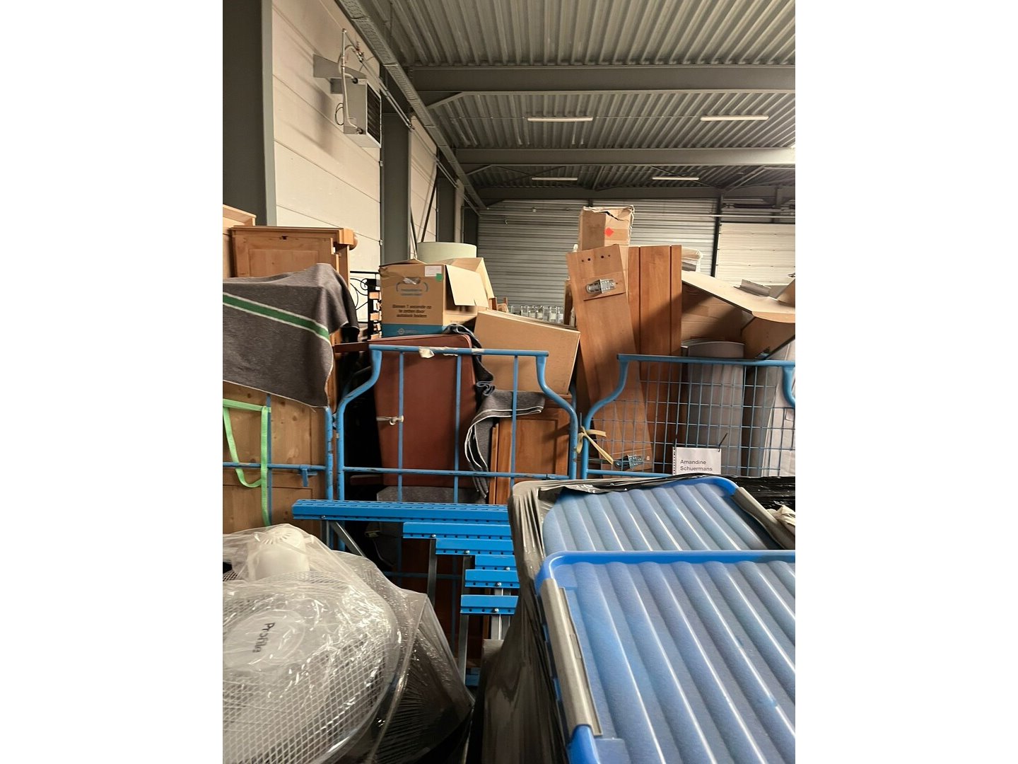 Wegens persoonlijk faillissement, volledige inboedel woning.<br /> Betreft 8 meubelkarren, 2 EURO paletten met goederen.<br /> Meubelkarren zijn inbegrepen in het lot.