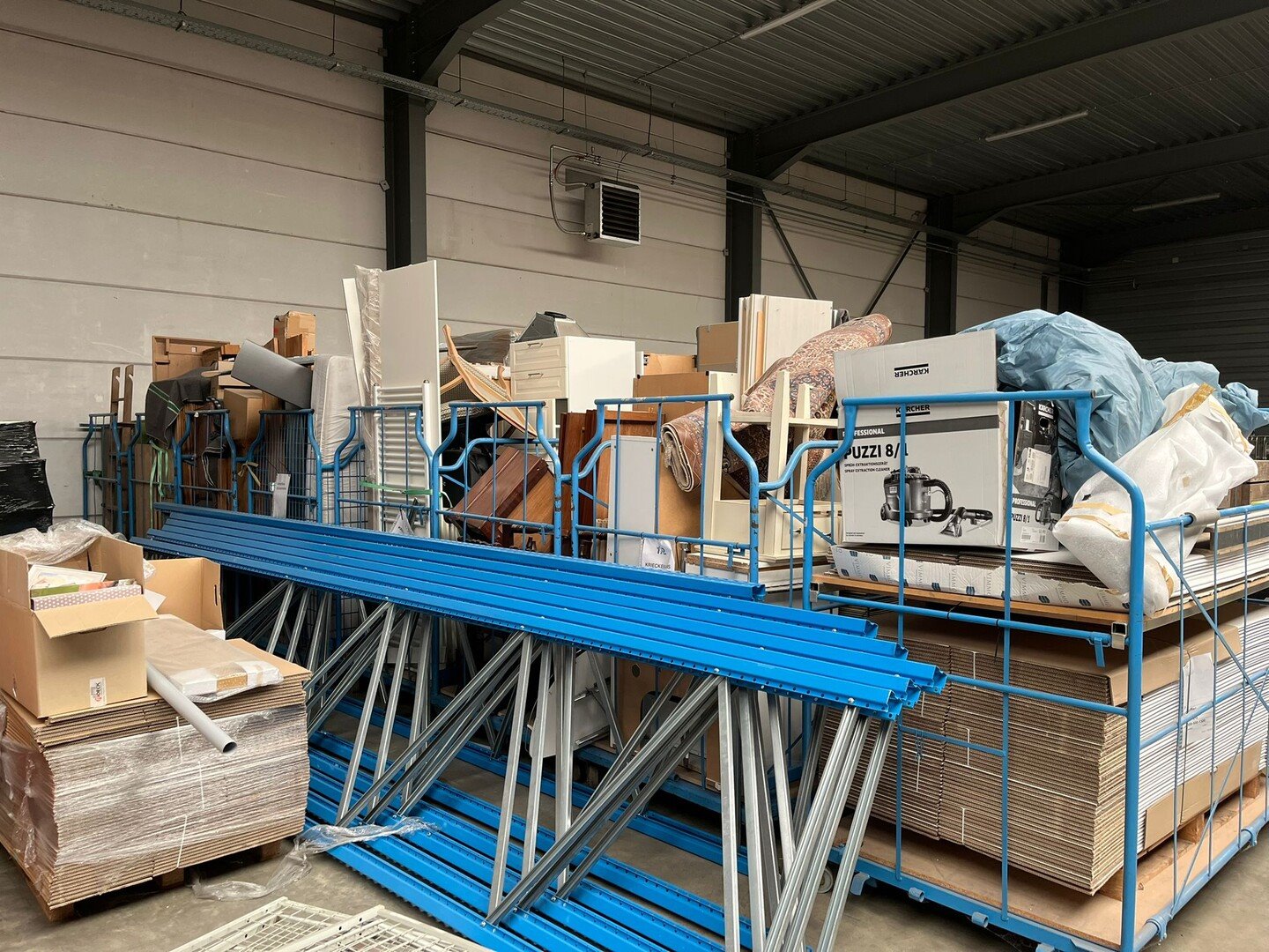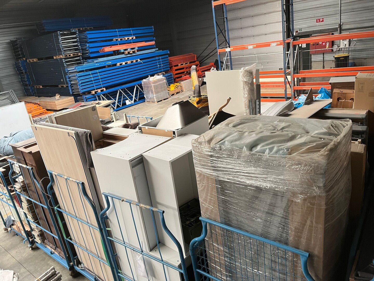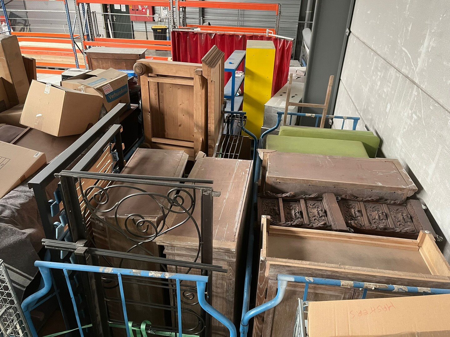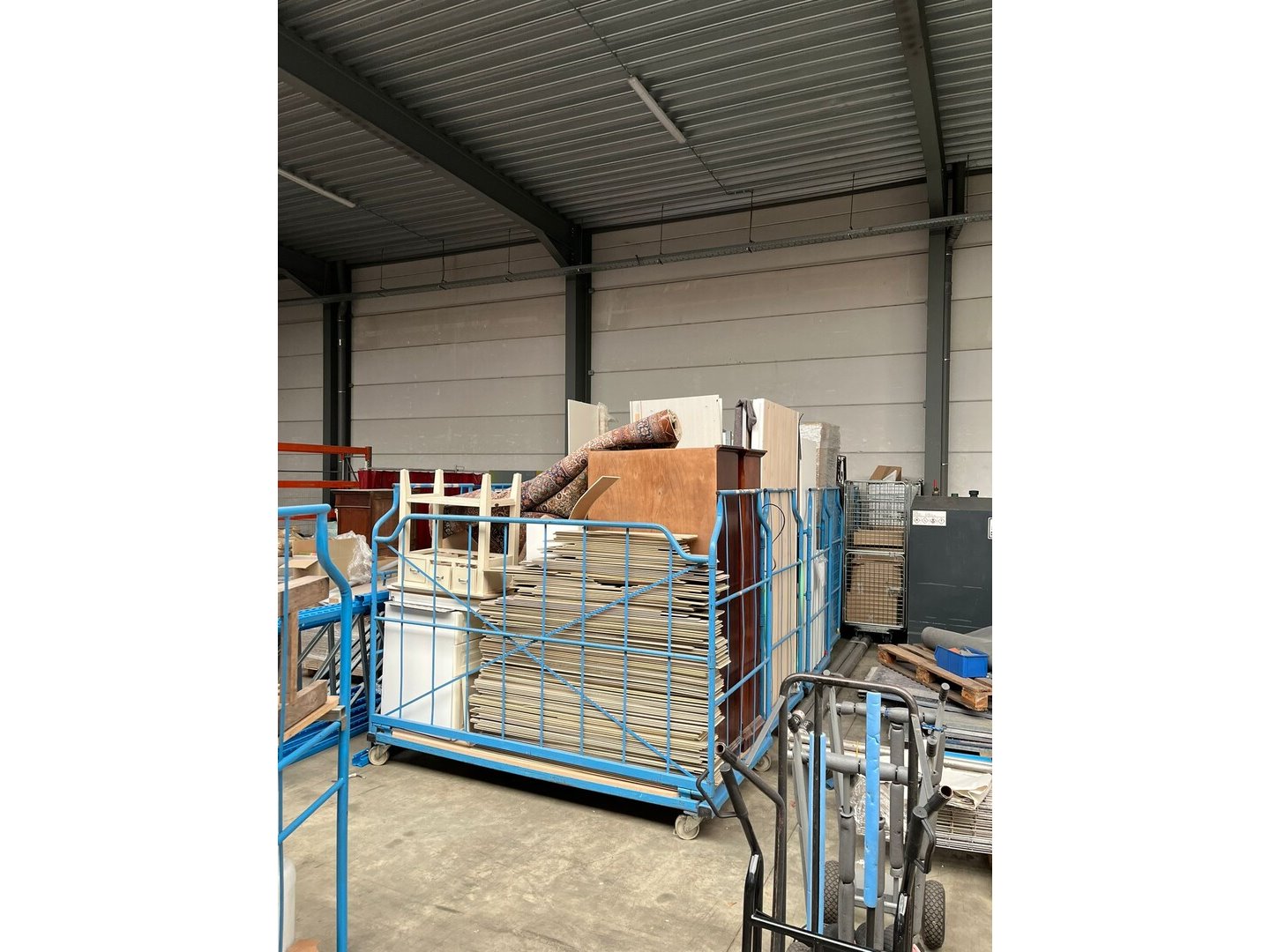 Wegens persoonlijk faillissement, volledige inboedel woning.<br /> Betreft 8 meubelkarren, 2 EURO paletten met goederen.<br /> Meubelkarren zijn inbegrepen in het lot.