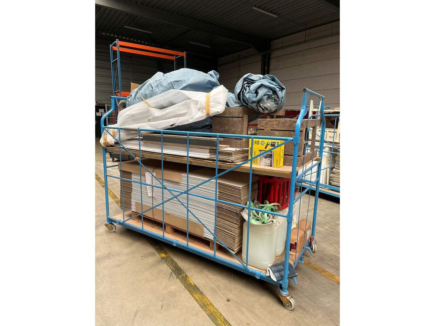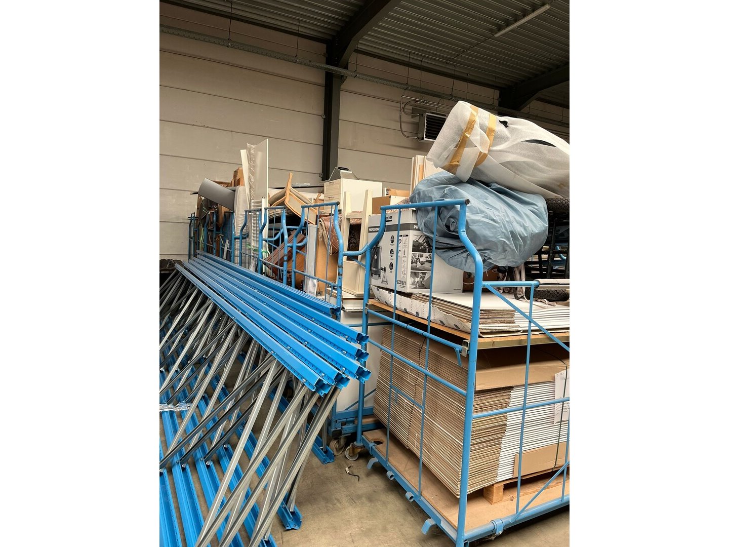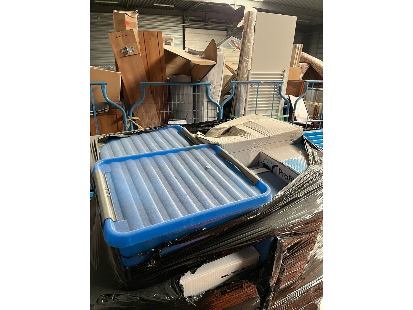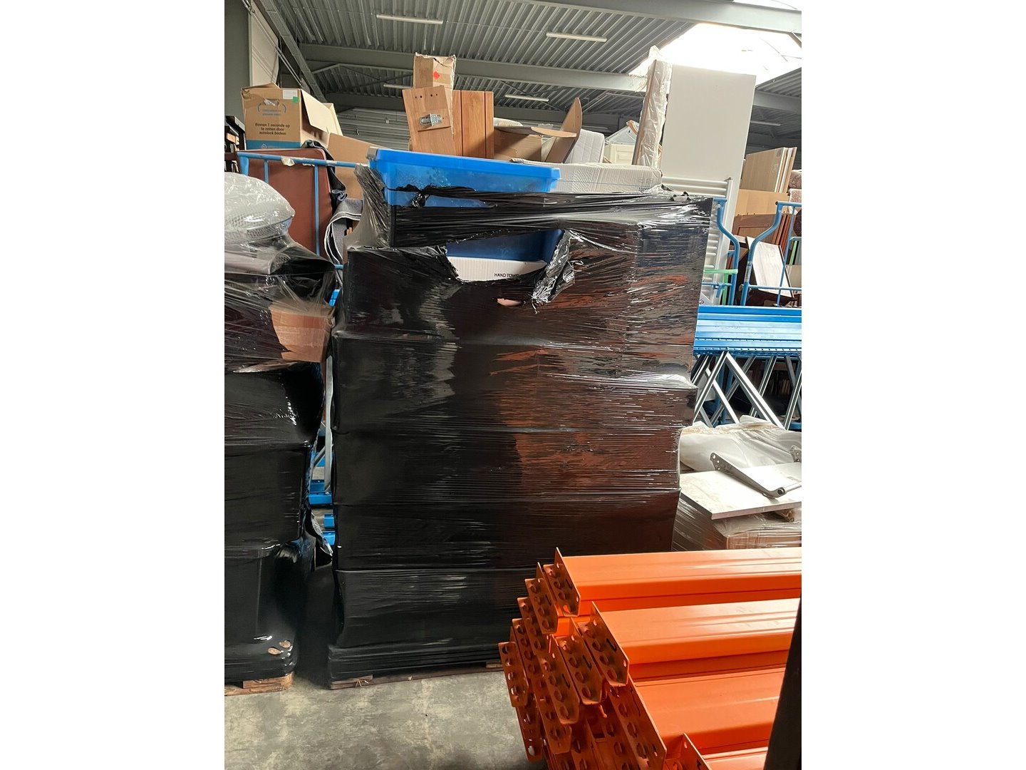 Wegens persoonlijk faillissement, volledige inboedel woning.<br /> Betreft 8 meubelkarren, 2 EURO paletten met goederen.<br /> Meubelkarren zijn inbegrepen in het lot.