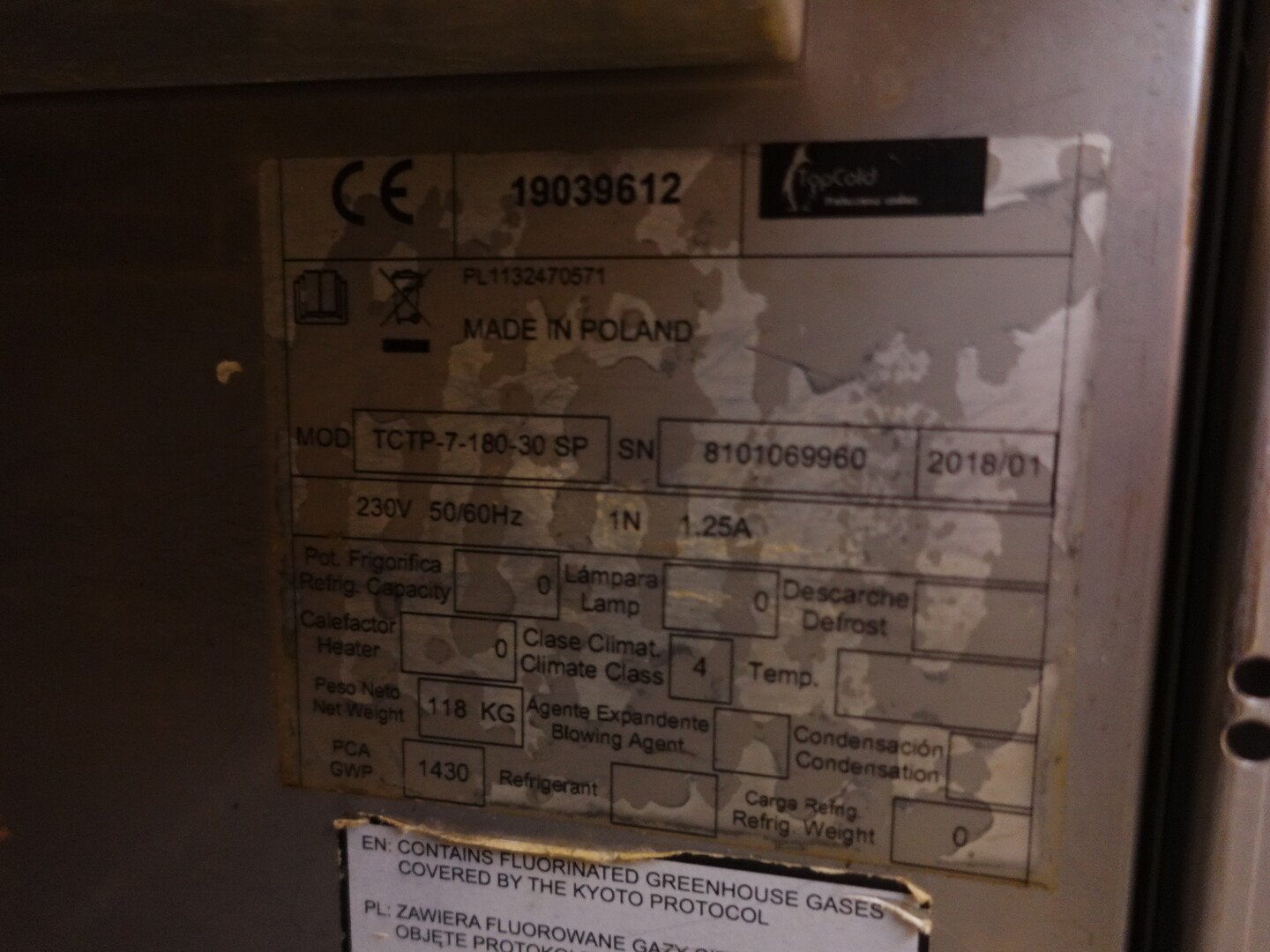 Type: TCTP-7-80-30 SP , 1800x700x840