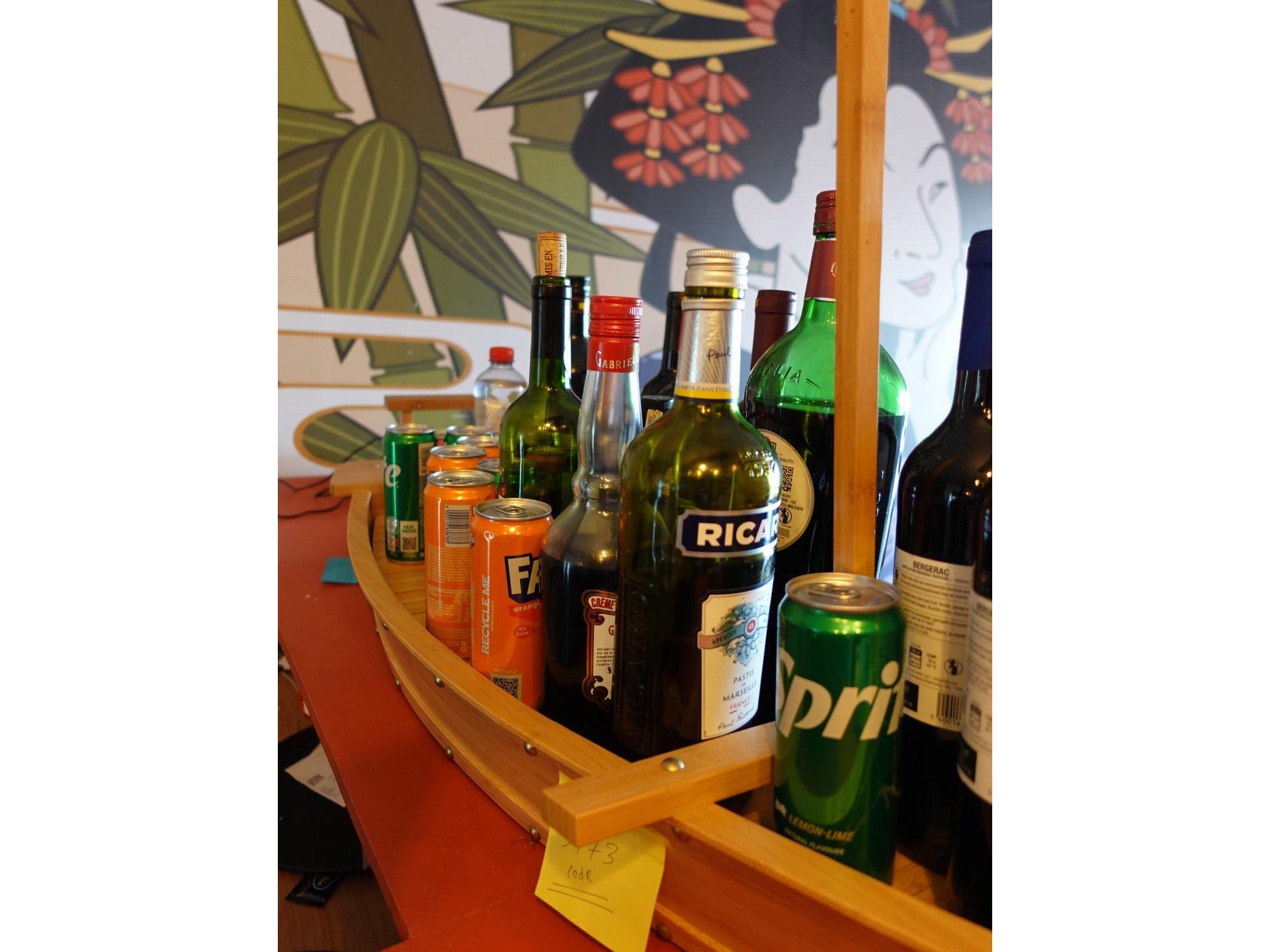 Oa: wijn, sterke dranken ( deels aangebroken), frisdrank