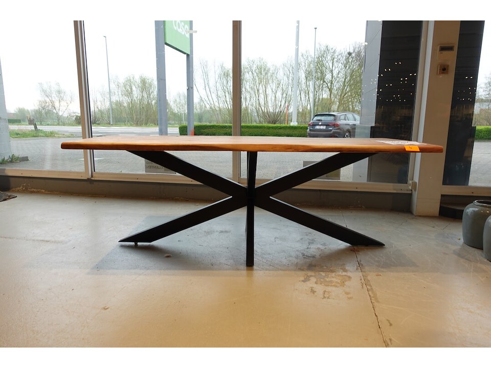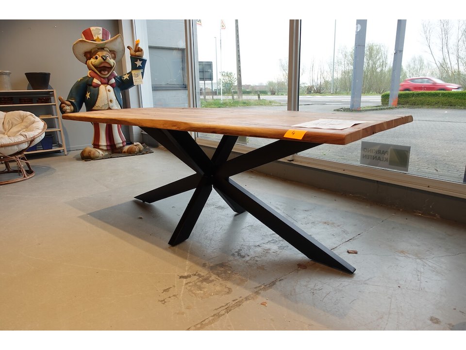 Oude teak, vv: metalen spiderpoot, 2200x960x800
