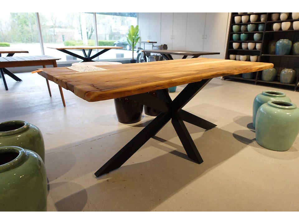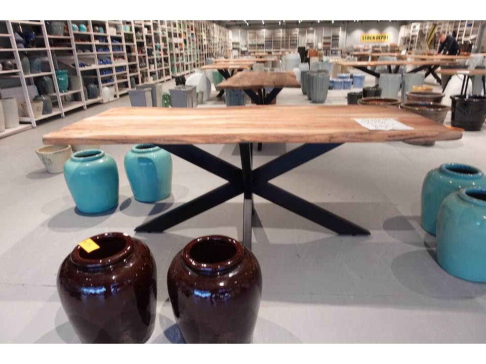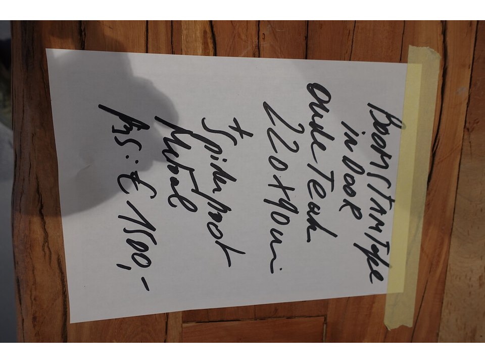 Oude teak, vv: metalen spiderpoot, 2200x900x800