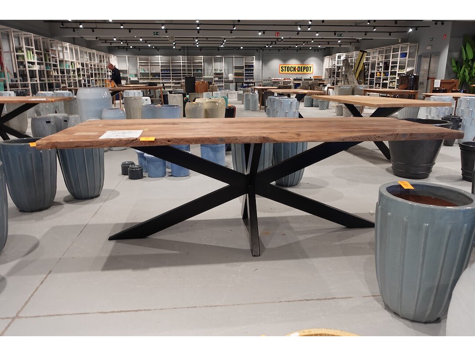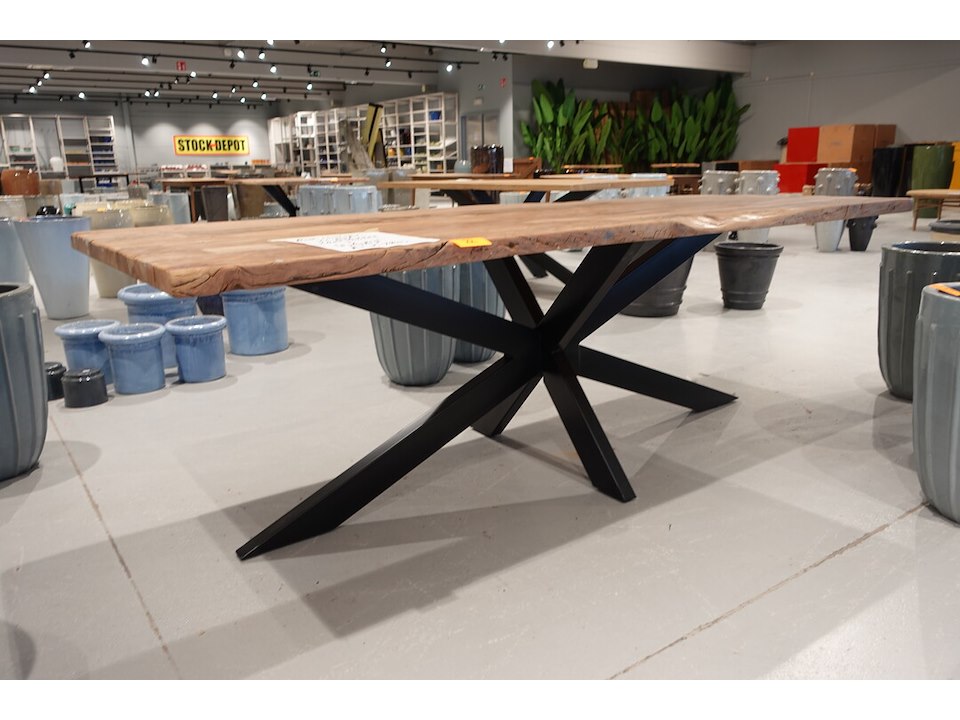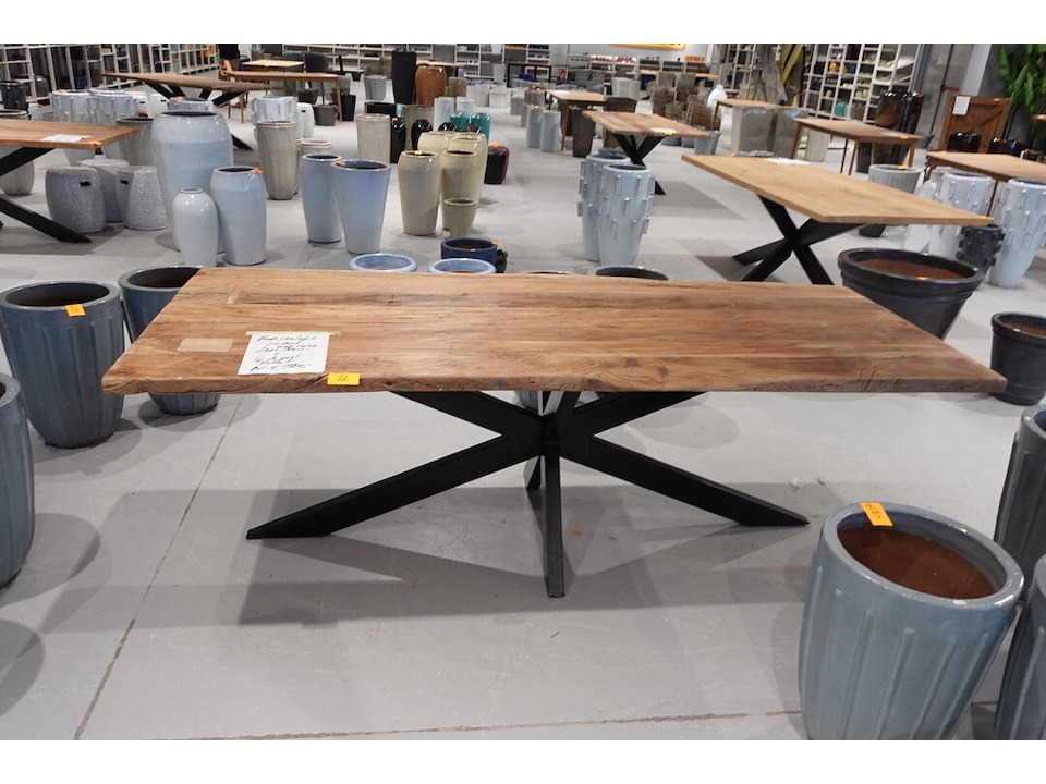 Oude teak, vv: metalen spiderpoot, 2400x1000x800