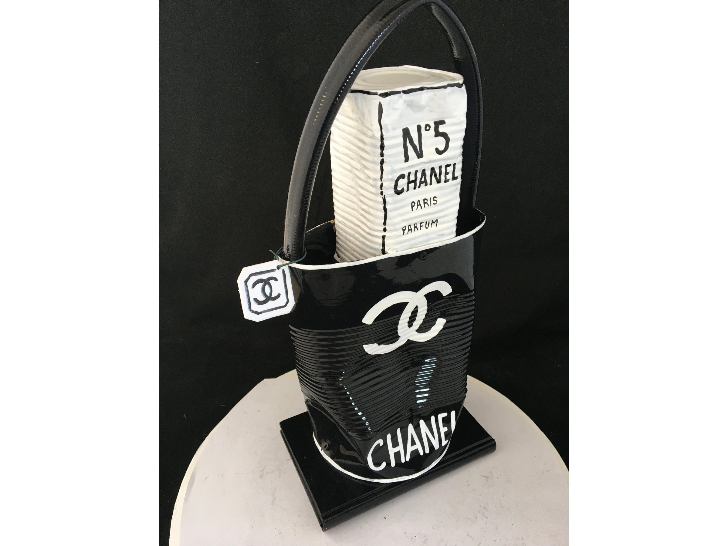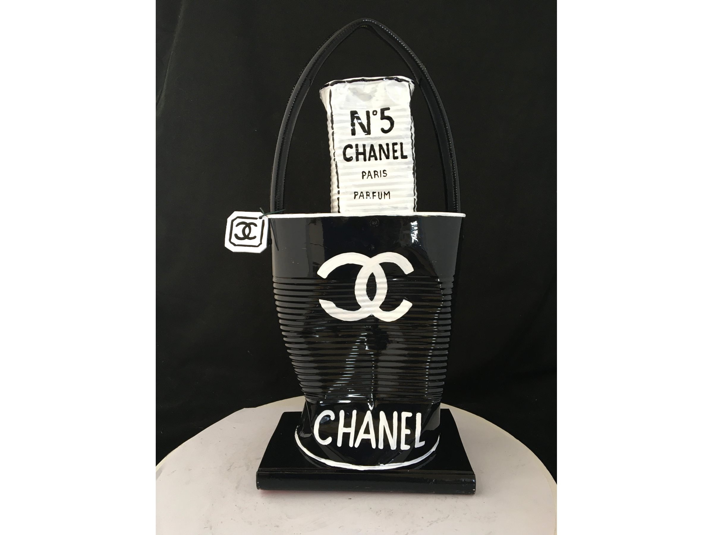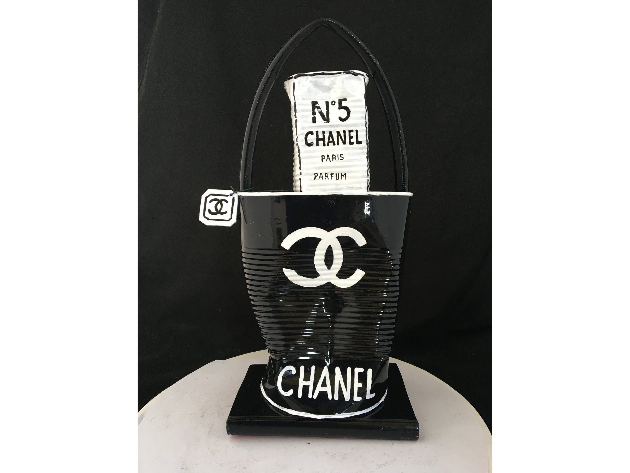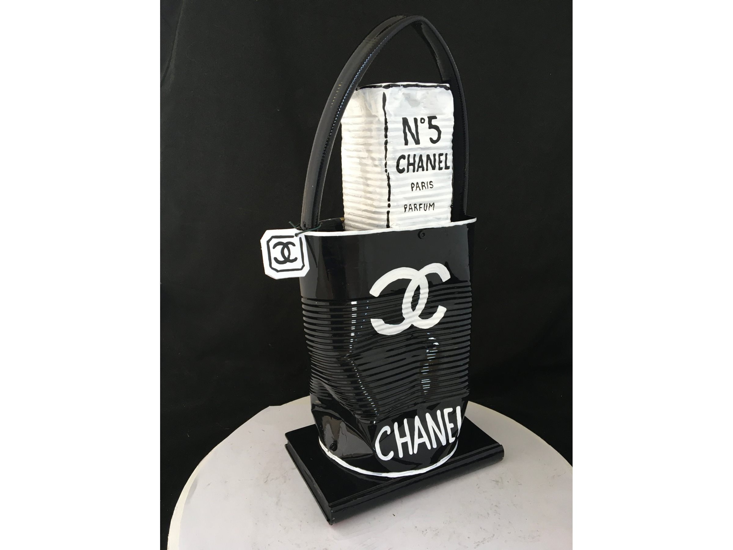 Waardering expert : € 300 - Prachtige beeldhouwwerk door kunstenaar Norman Gekko. - Chanel tas met N.5 parfum - Datum 2021 - Dit originele kunstwerk behoort tot de serie « Distinguishing Marques » van de kunstenaar. Distinguishing Marques, een nieuwe reeks sculpturen door kunstenaar Norman Gekko, is waarschijnlijk een van de meest complete series van de kunstenaar vanuit technisch en esthetisch oogpunt. - De serie vat een aantal sociologisch gesproken concepten samen, waaronder een poging om het stigma van luxe-iconografie opnieuw toe te eigenen... - Ondertekend op de achterzijde met titel en nummer - Inclusief certificaat - Afmetingen: 40 x 20 cm. - Gelakt.