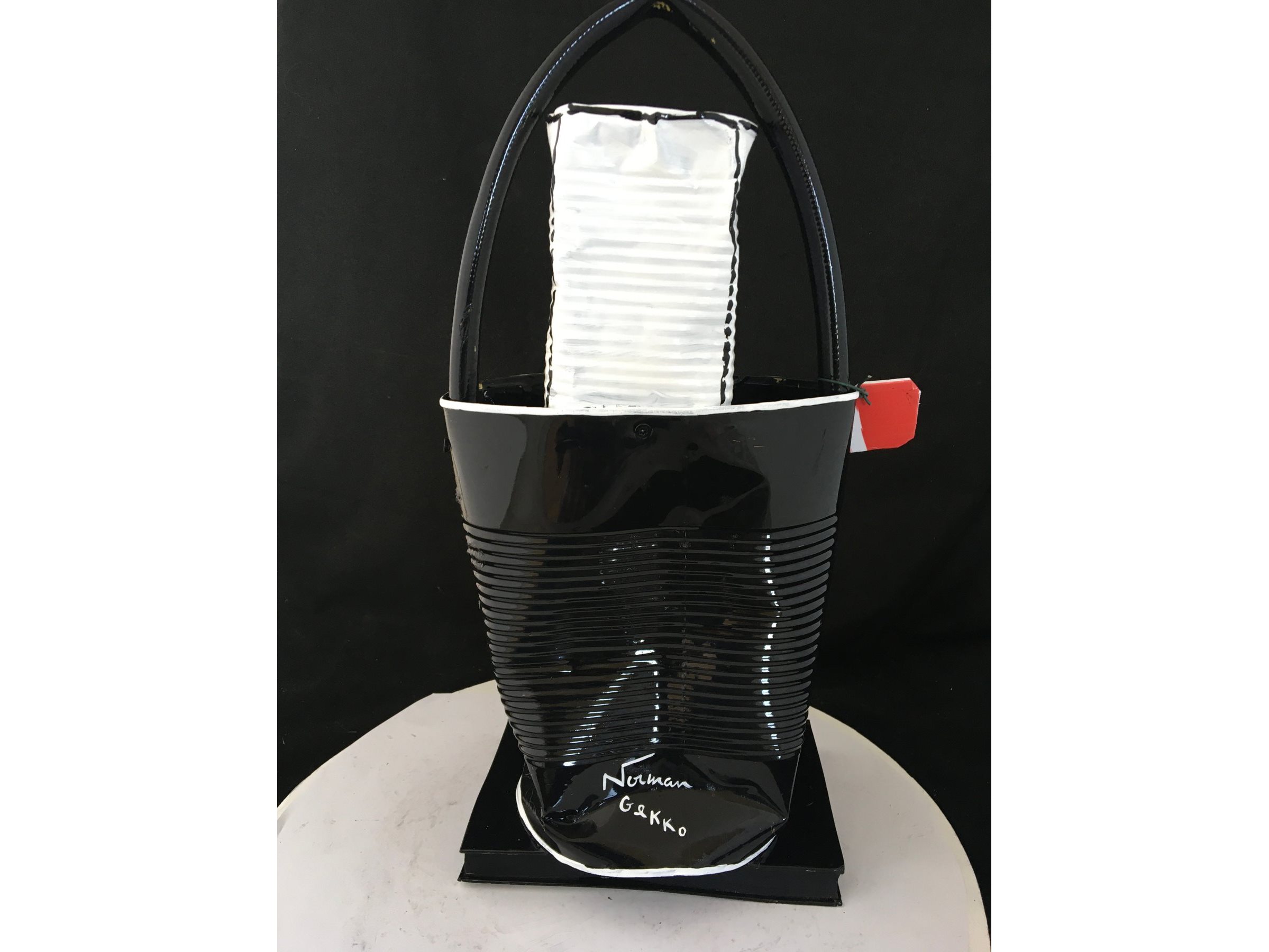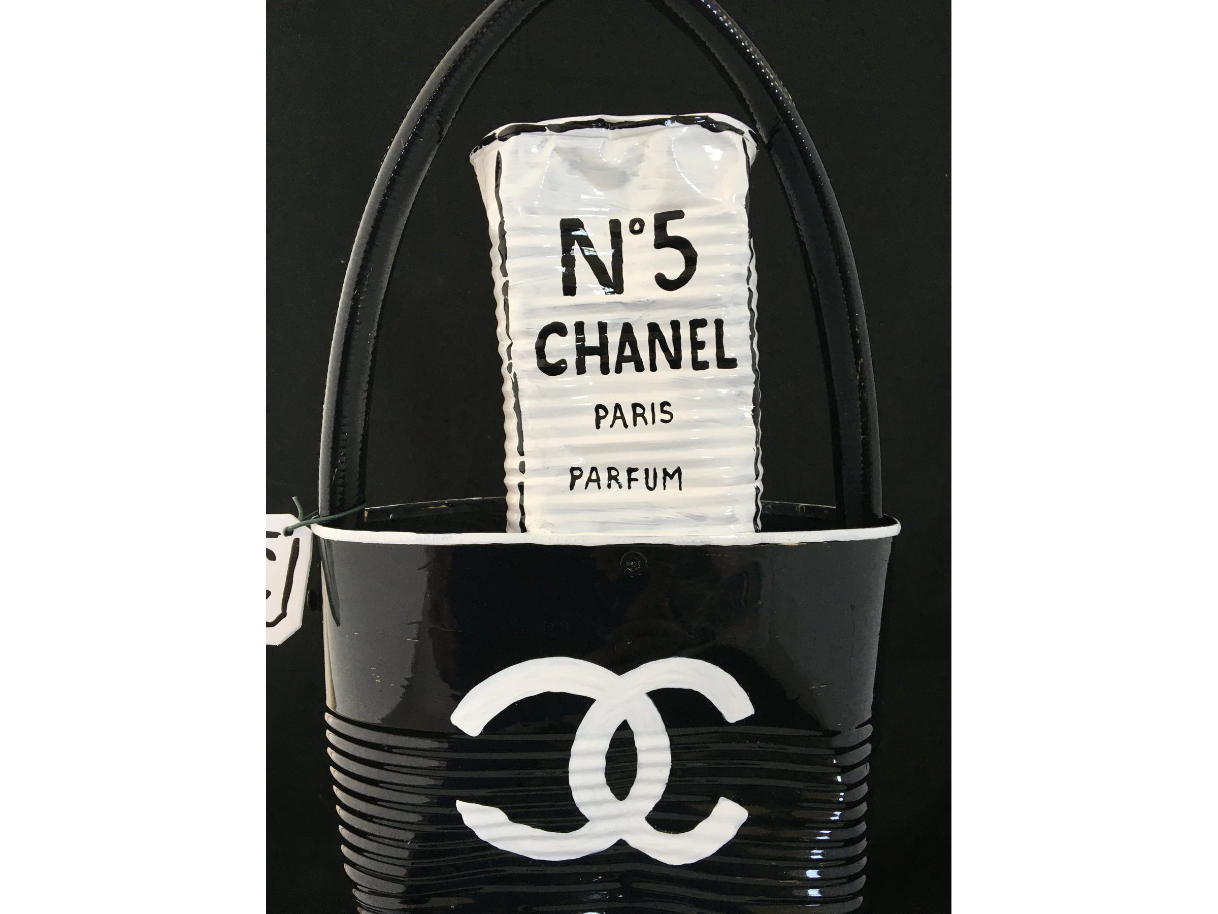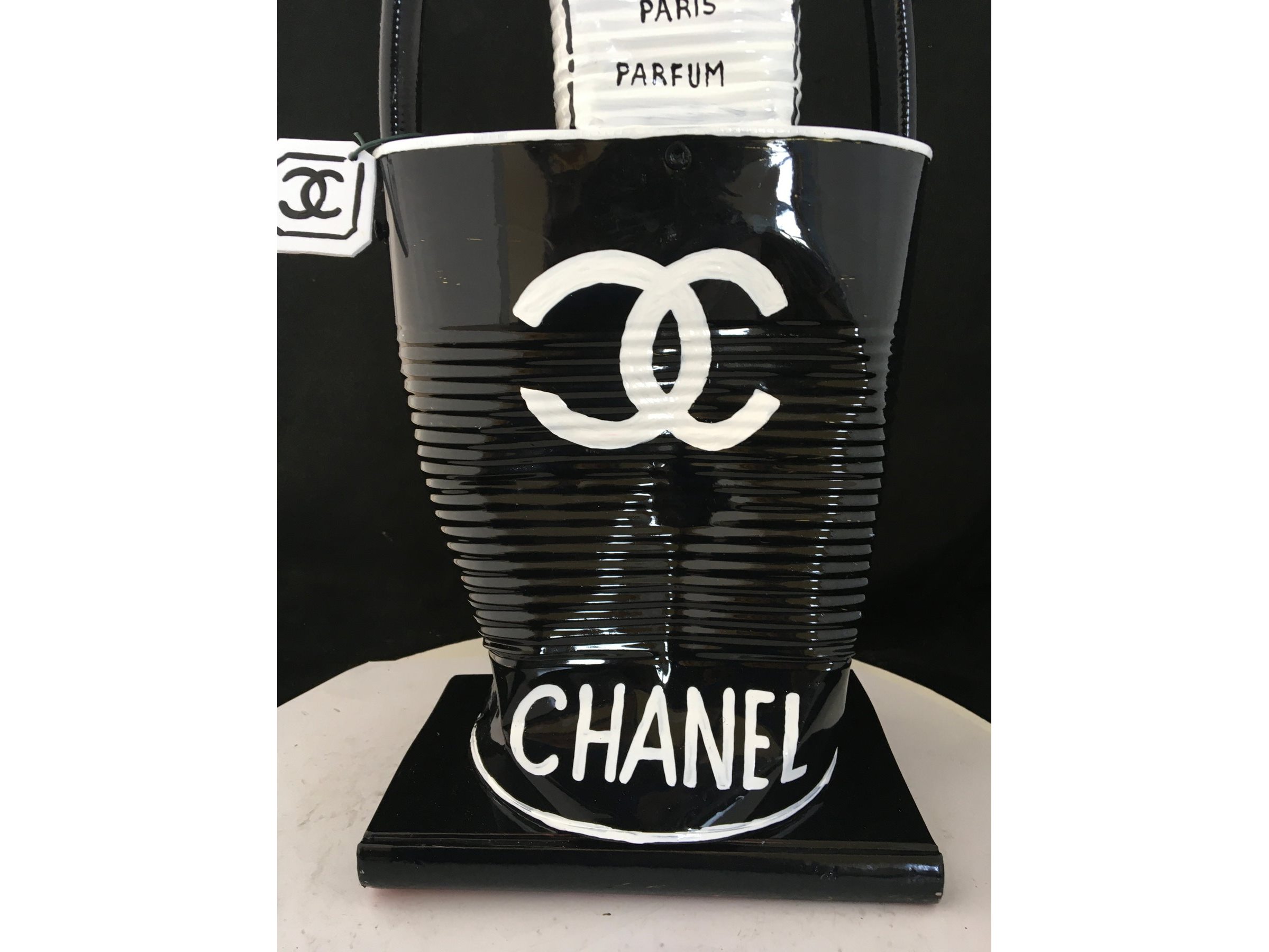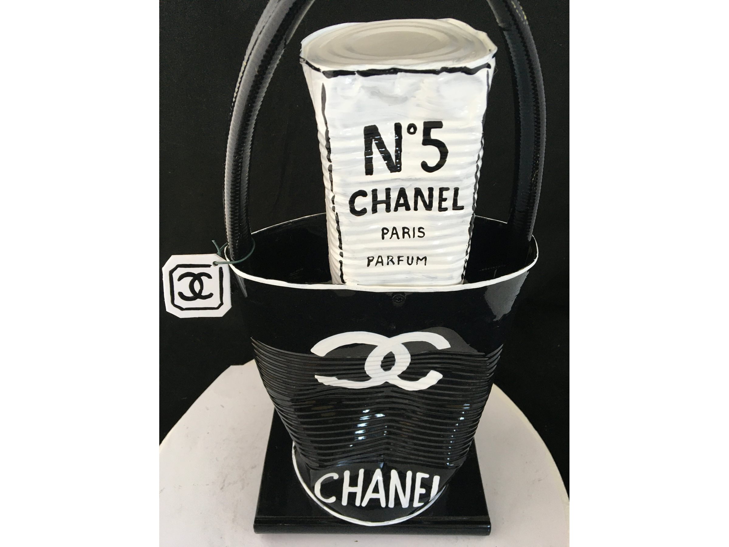 Waardering expert : € 300 - Prachtige beeldhouwwerk door kunstenaar Norman Gekko. - Chanel tas met N.5 parfum - Datum 2021 - Dit originele kunstwerk behoort tot de serie « Distinguishing Marques » van de kunstenaar. Distinguishing Marques, een nieuwe reeks sculpturen door kunstenaar Norman Gekko, is waarschijnlijk een van de meest complete series van de kunstenaar vanuit technisch en esthetisch oogpunt. - De serie vat een aantal sociologisch gesproken concepten samen, waaronder een poging om het stigma van luxe-iconografie opnieuw toe te eigenen... - Ondertekend op de achterzijde met titel en nummer - Inclusief certificaat - Afmetingen: 40 x 20 cm. - Gelakt.