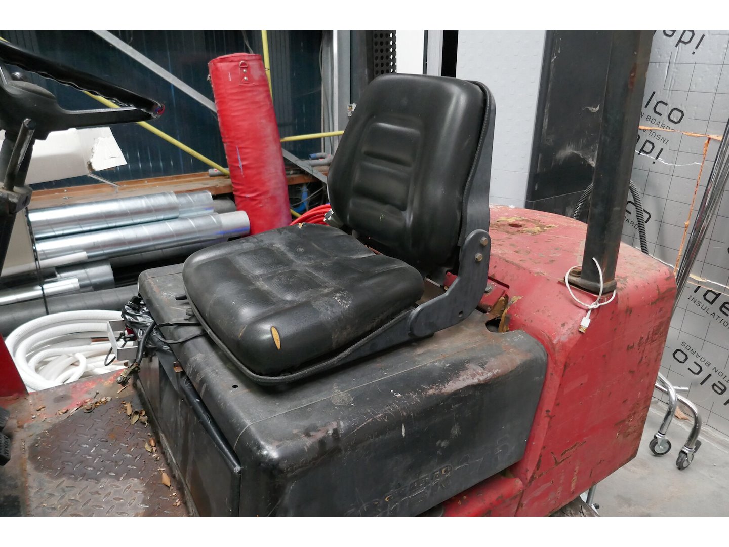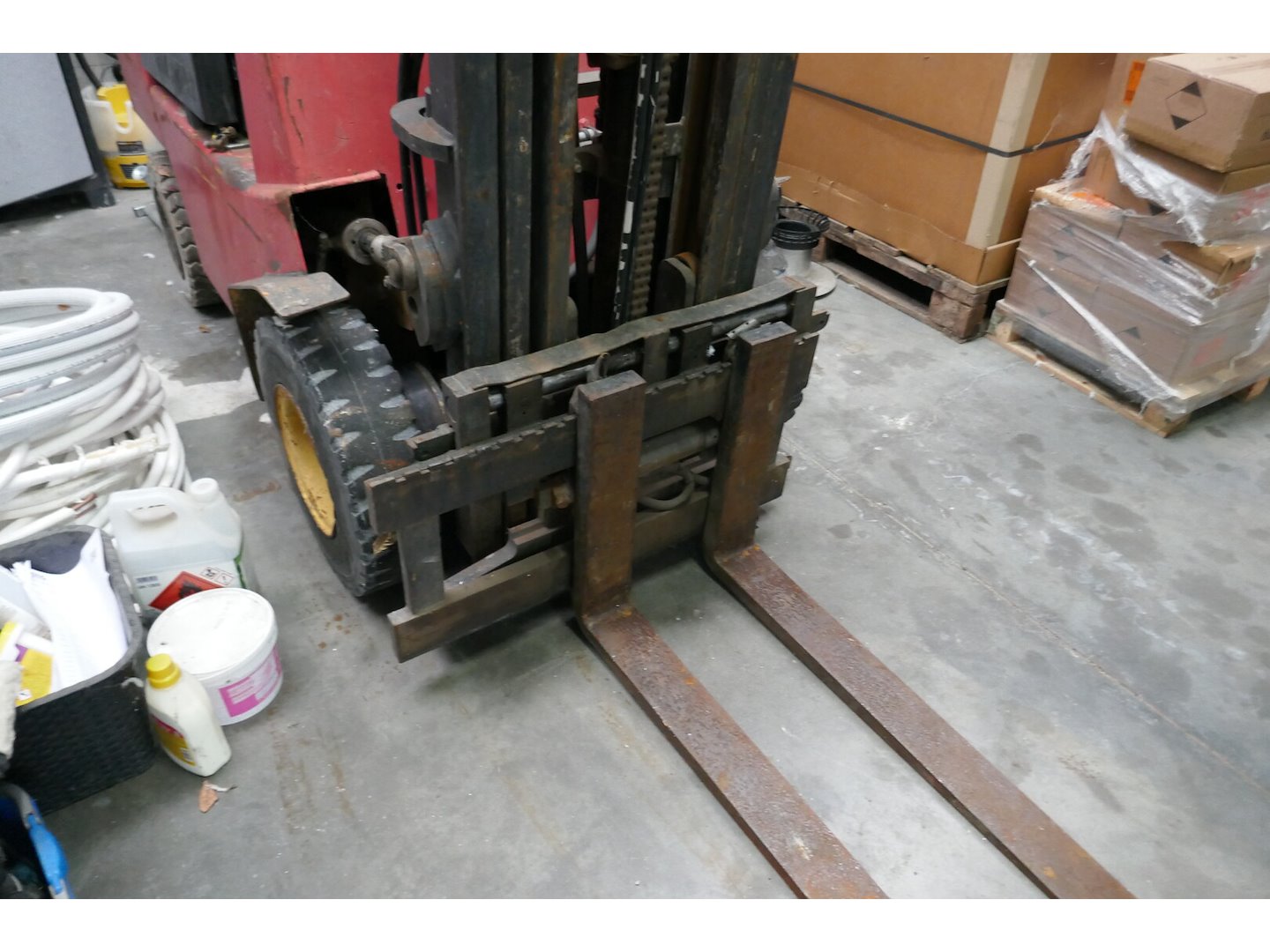 Aard : vorkheftruck - elektrisch<br /> merk : HYSTER<br /> model : niet zichtbaar<br /> hefcapaciteit : niet zichtbaar<br /> hefhoogte : niet zichtbaar<br /> triplex mast - volle banden – batterijlader<br /> dieselmotor, zonder startbatterij